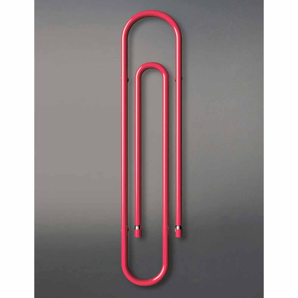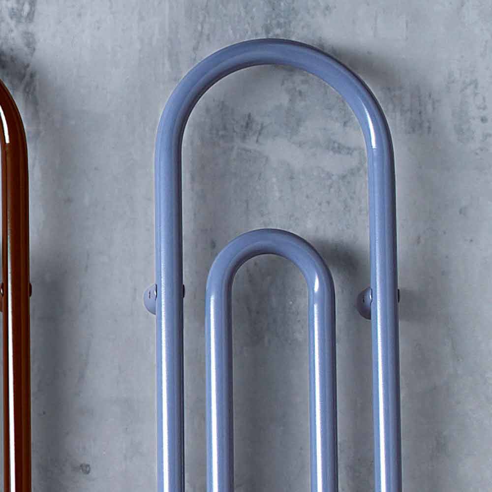 Radiator in the shape of a colored vertical paperclip, in the hydraulic version, with a modern and fun design. The theme is the expansion of the shape of everyday objects and their change of function in a game of immediate recognition and pleasantness. Available in different colour and size variations, choose the ones best suited to you!