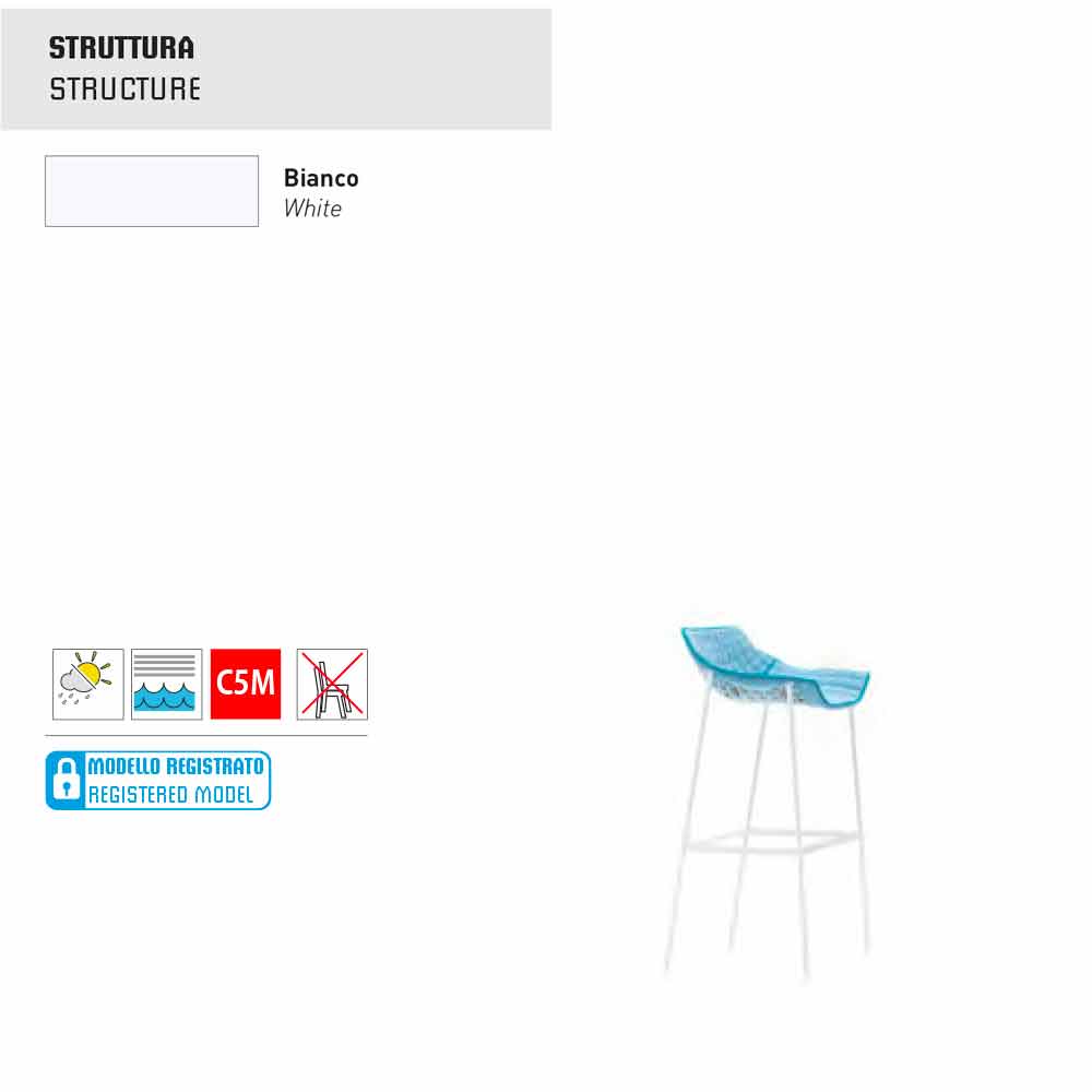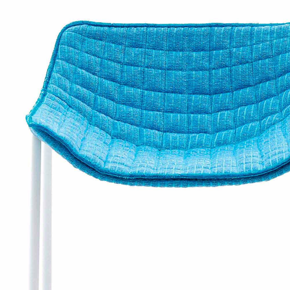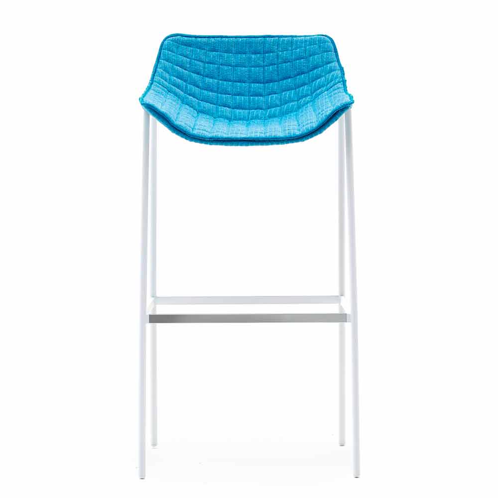 Summer Set is a garden stool characterized by a load-bearing structure in white powder coated steel and a padded fabric seat.