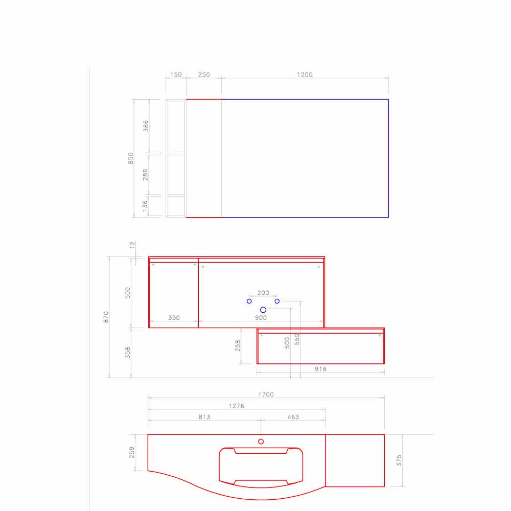 HPL fronts: in wood particles th. 16 mm V100 in class E1 with ABS edge.