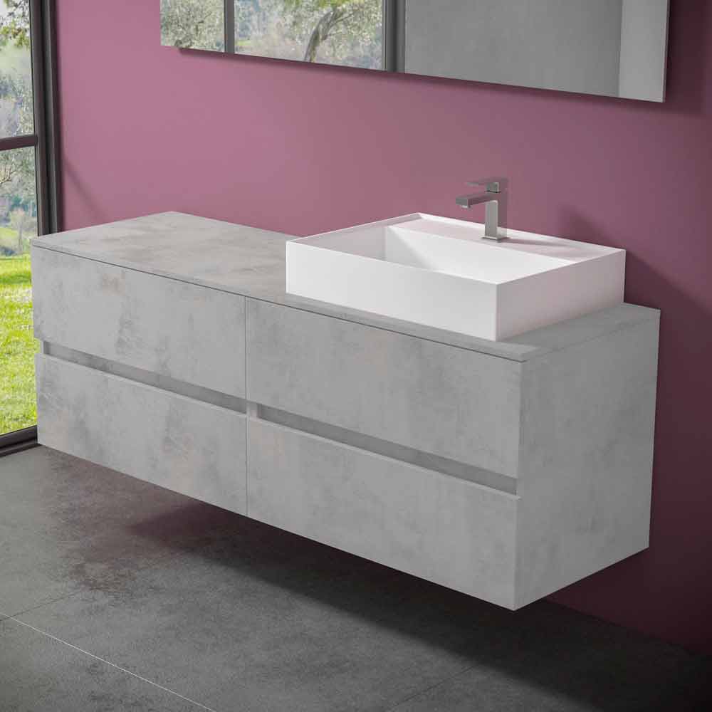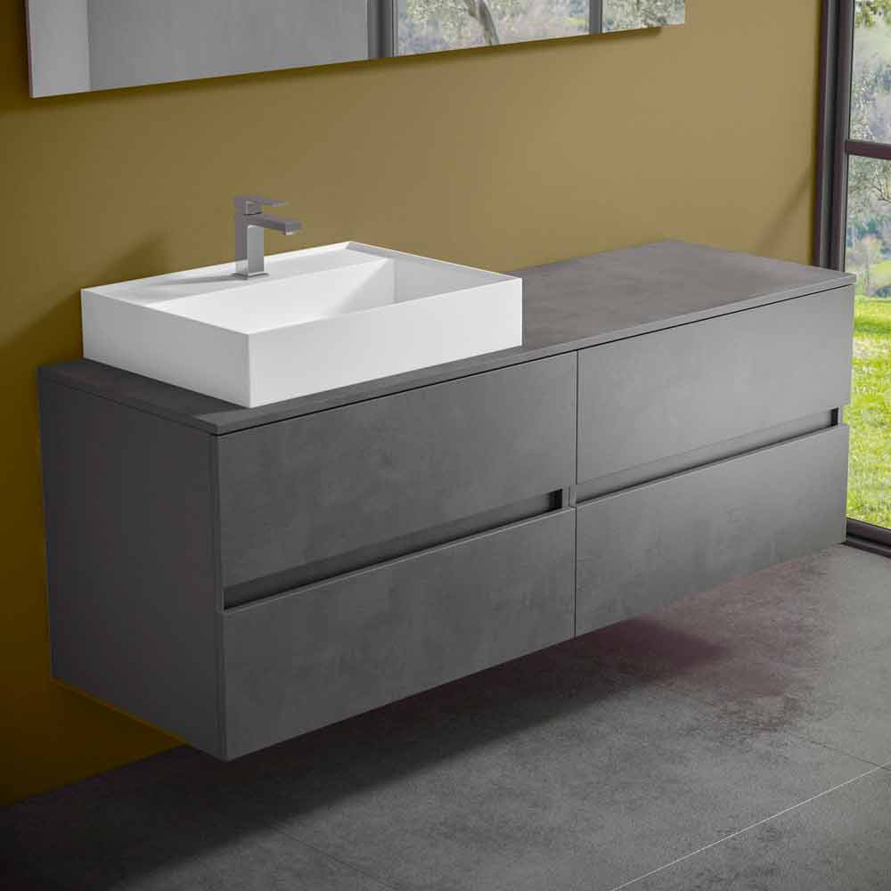 It is a suspended bathroom furniture with countertop washbasin which is characterized by a modern and timeless design , with geometric and essential queues for a contemporary and elegant atmosphere, without sacrificing practicality and functionality.
