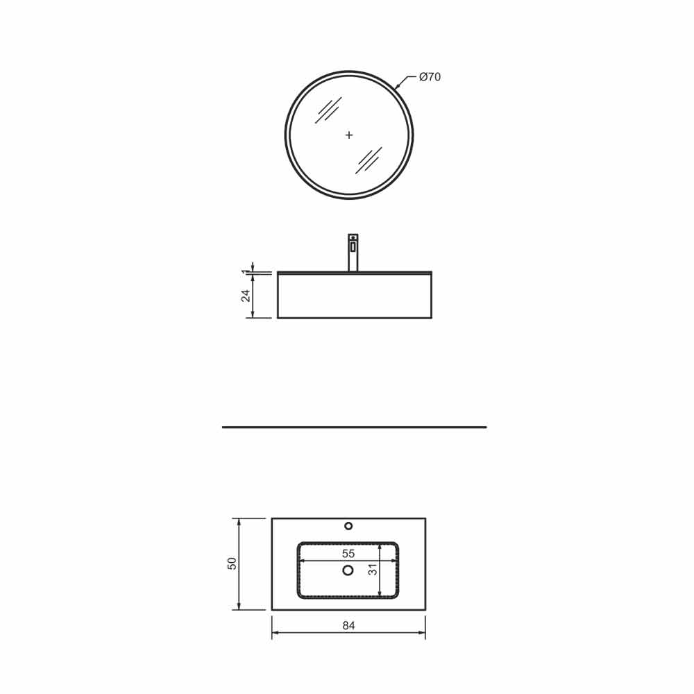 glass top with integrated basin. It is characterized by the purity of the queues and the highly refined finish that concerns the modularity of the product.