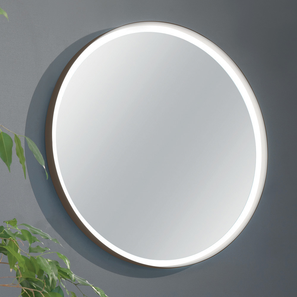 LED lighting integrated throughout the circumference, combined with a matt patinated bronze lacquered metal frame.