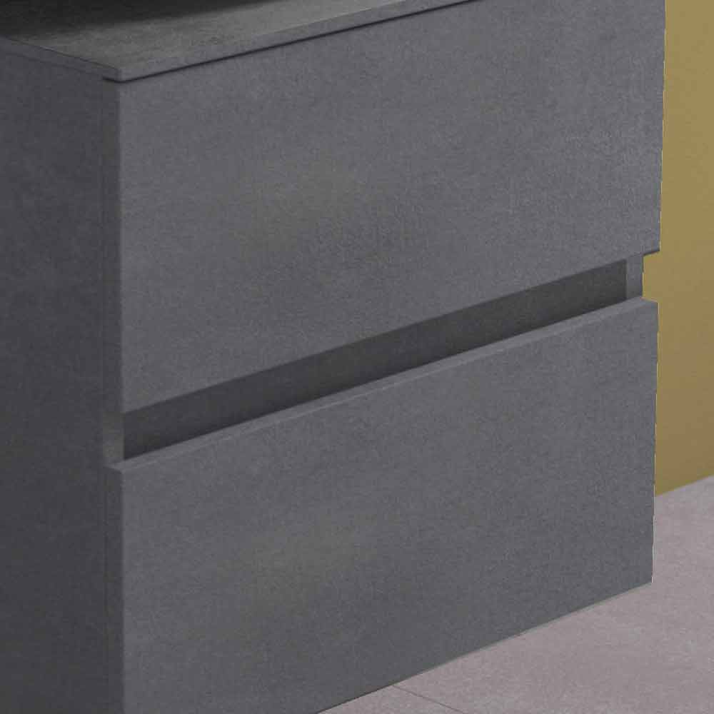 The washbasin base with drawer and shaped drawer is made of laminated and water-repellent hydro W 100 wood fibre , in order to ensure greater durability and prevent the cabinet from being damaged in contact with water.