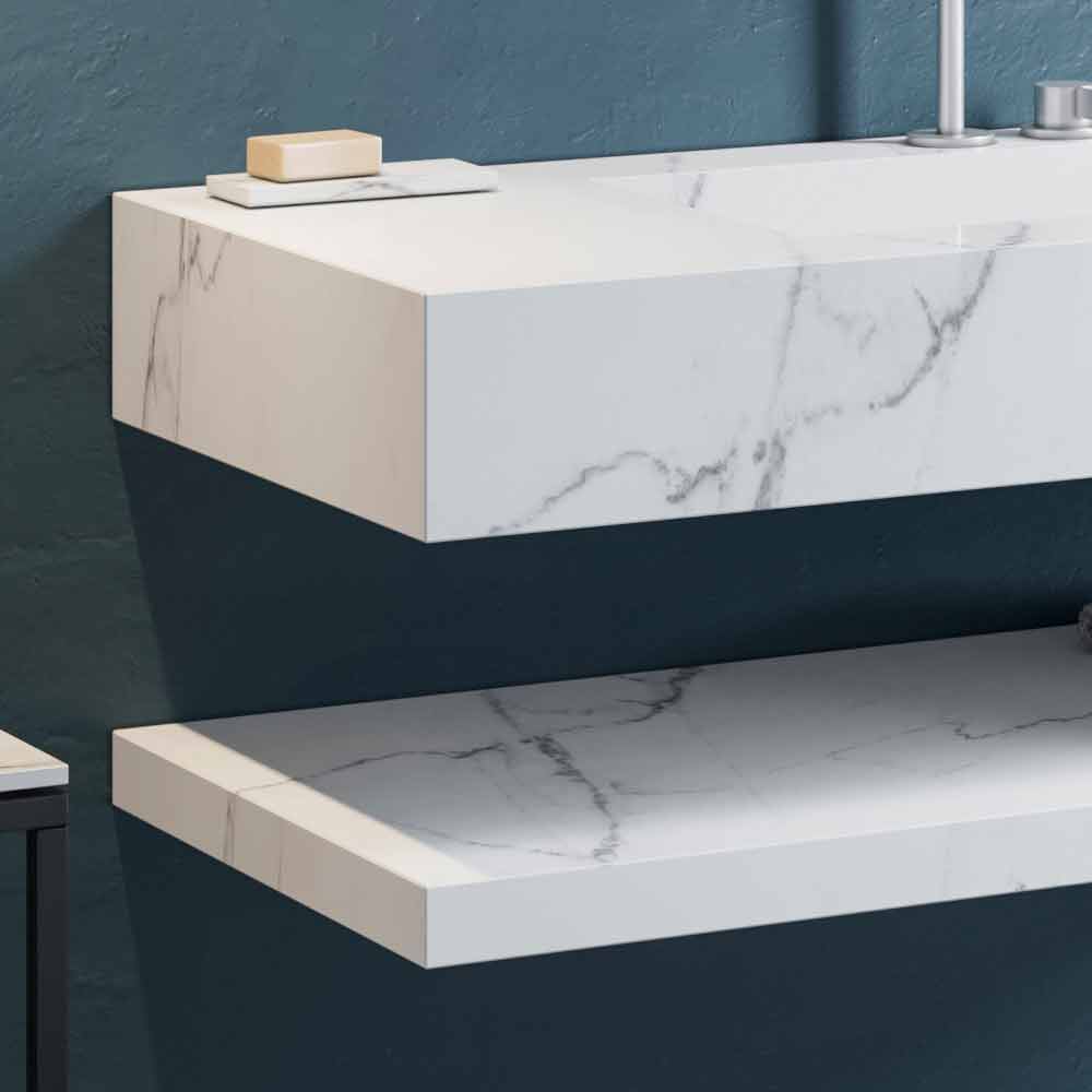 Suspended bathroom composition in porcelain stoneware, a fine made in Italy item.