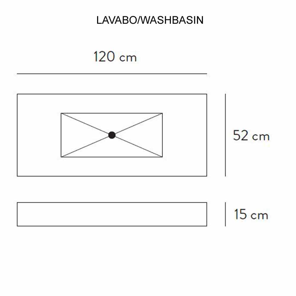 The composition includes:- suspended console with integrated central basin: W 120 x D 52 x H 15 cm
