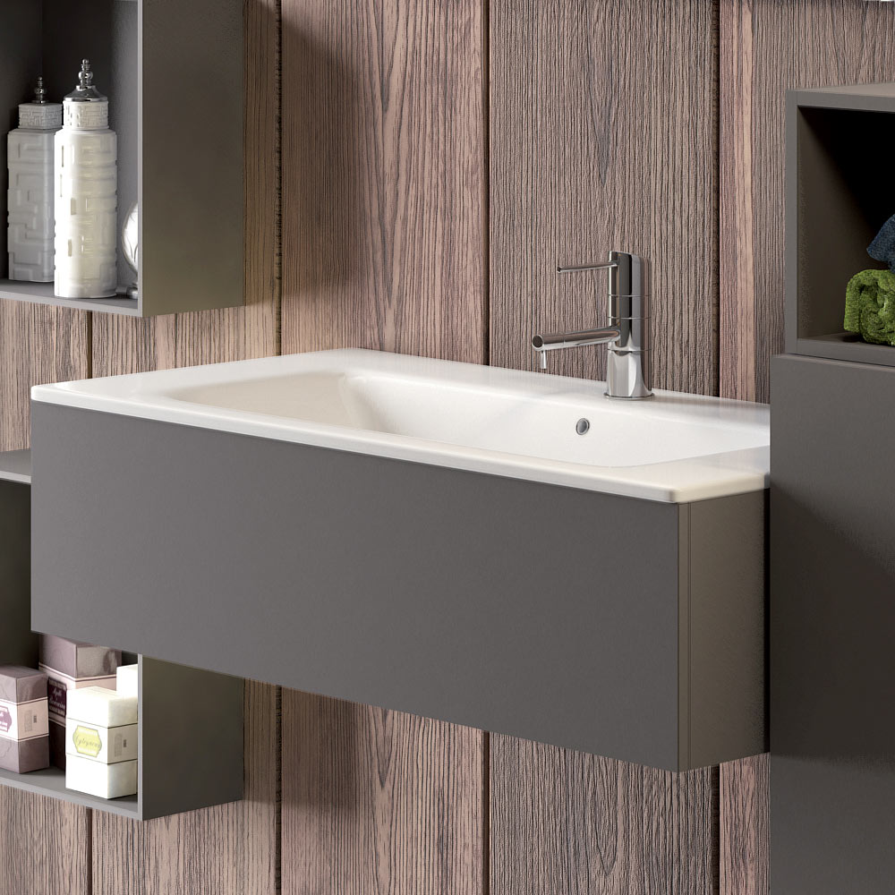 - A washbasin base in smoky grey Fenix; L90xH24xD46 cm;