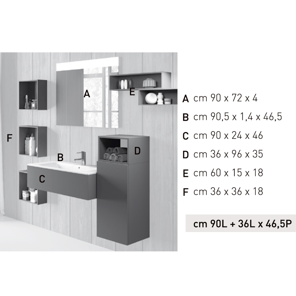 - A lateral base in smoky grey Fenix; L36xH96xD35 cm;