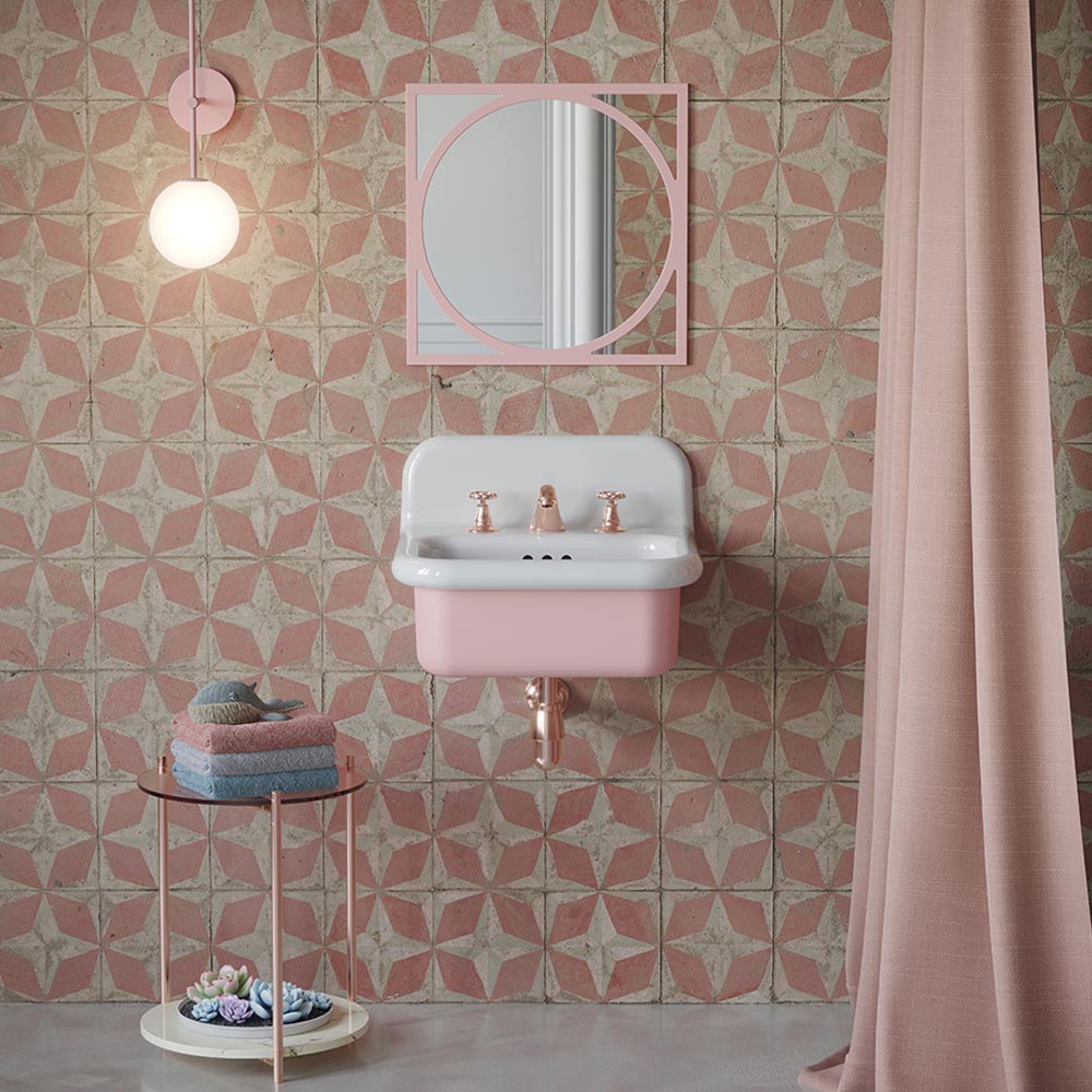 Candy pink and white ceramic washbasin