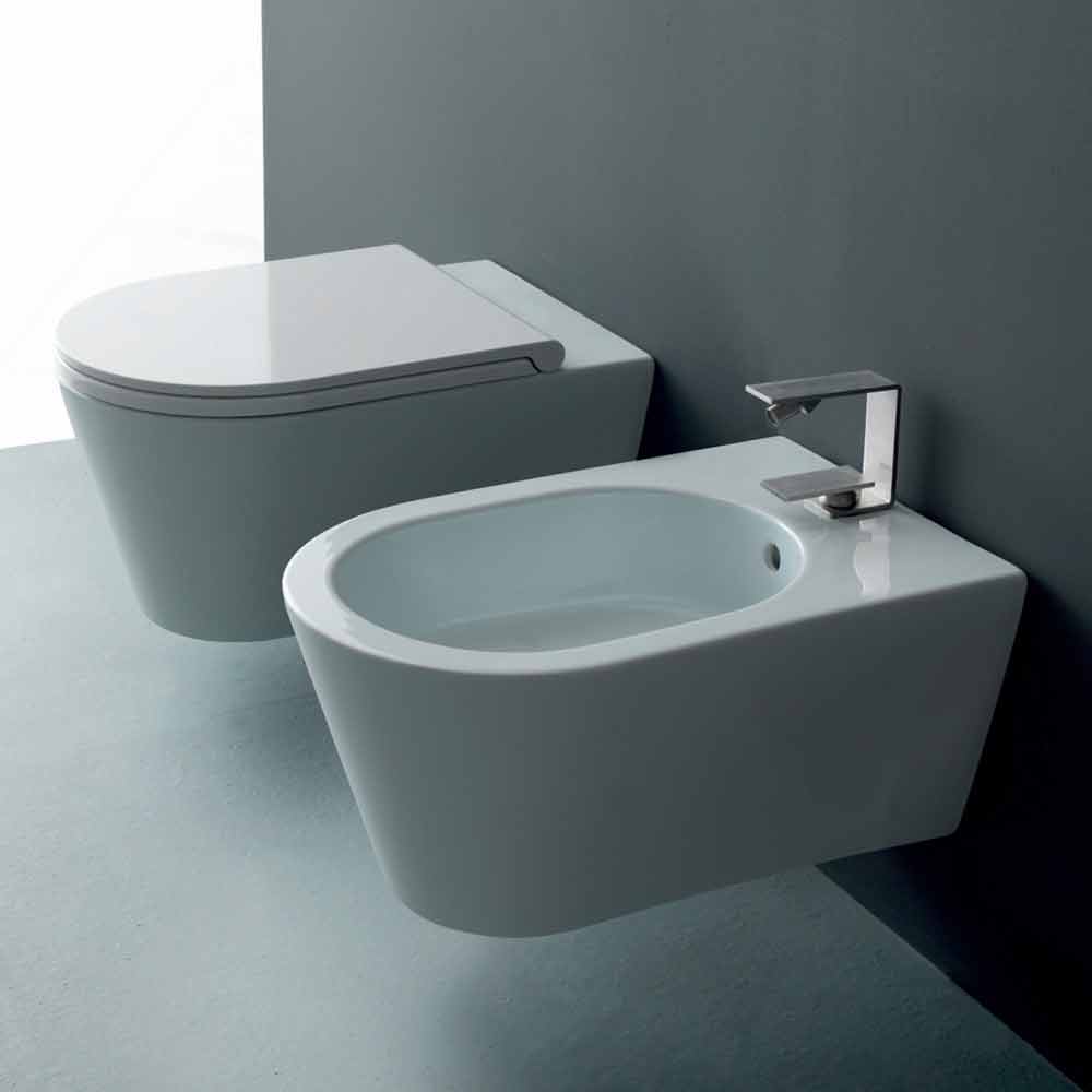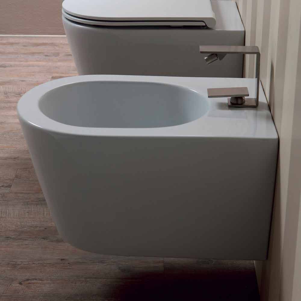 Design ceramic wall hung bidet Sun Round 57x37cm, made in Italy