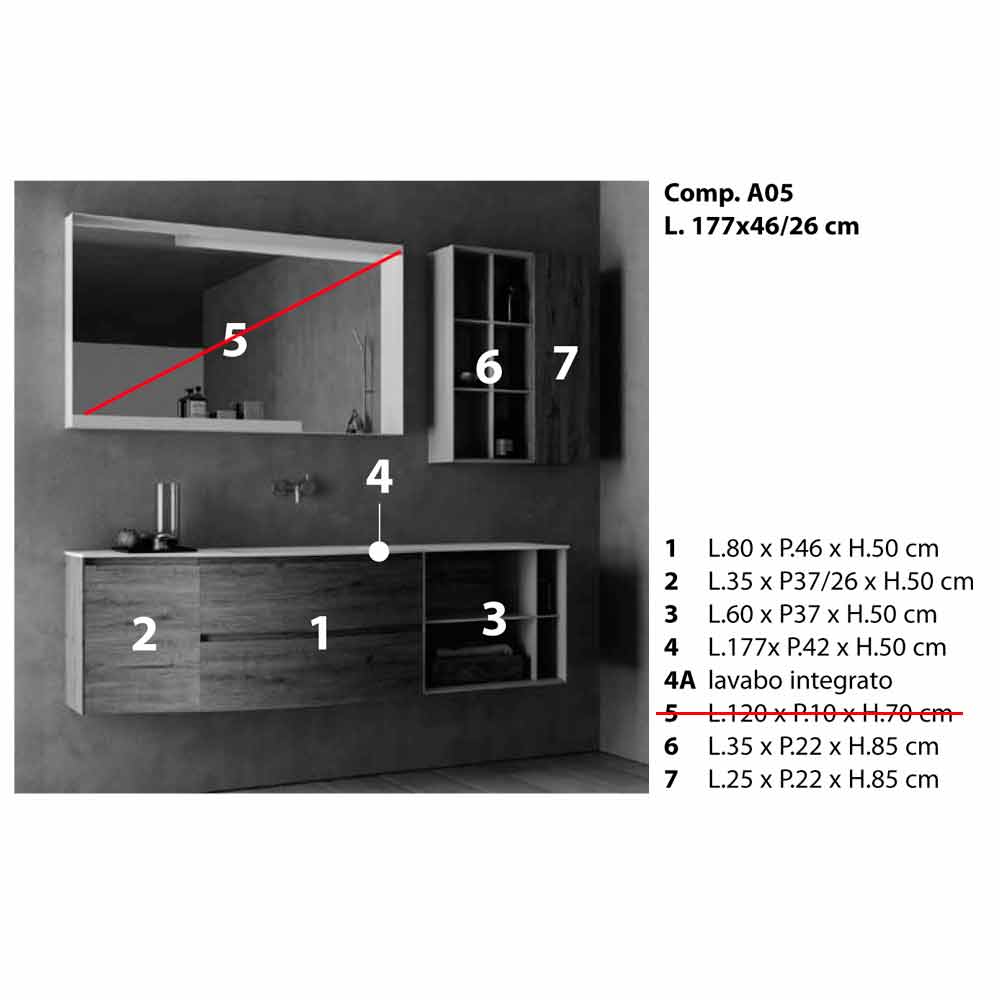 The peculiarity of this composition is given by the built-in washbasin characterized by two lateral sides that gently descend towardss the basin.