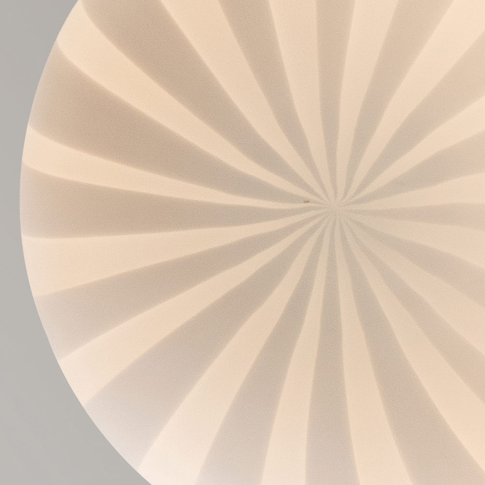 The lamp is made with a white filigree glass diffuser through craftsmanship , a material that grants luster and modernity to the light, which passes through it creating sublime and engaging atmospheres, and a removable aluminium base.