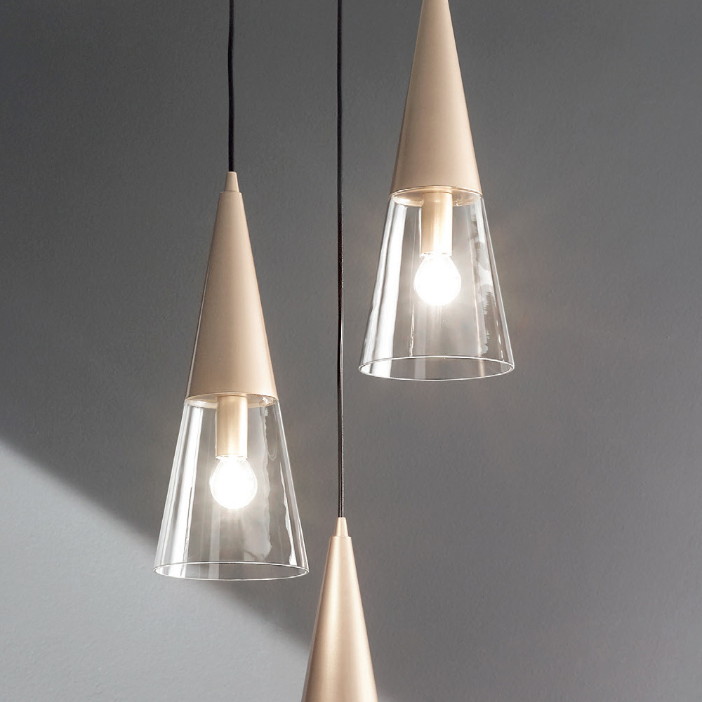 modern and cutting-edge design in a unique way and with personality. The wonderful blown glass lampshades give personality to the lamp and underline its elegance. The proposed finishes instead complete the final aesthetics of the product, highlighting its uniqueness and creating a