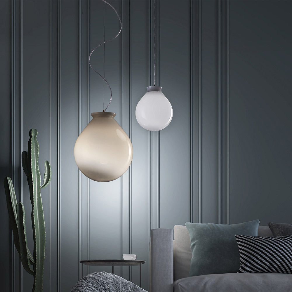 Handcrafted hanging lamp in Venetian blown glass, modern design.