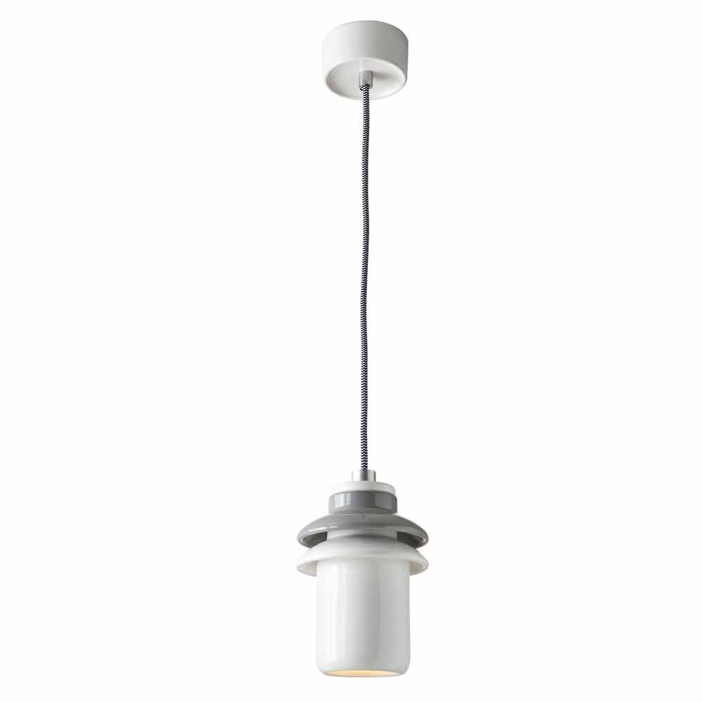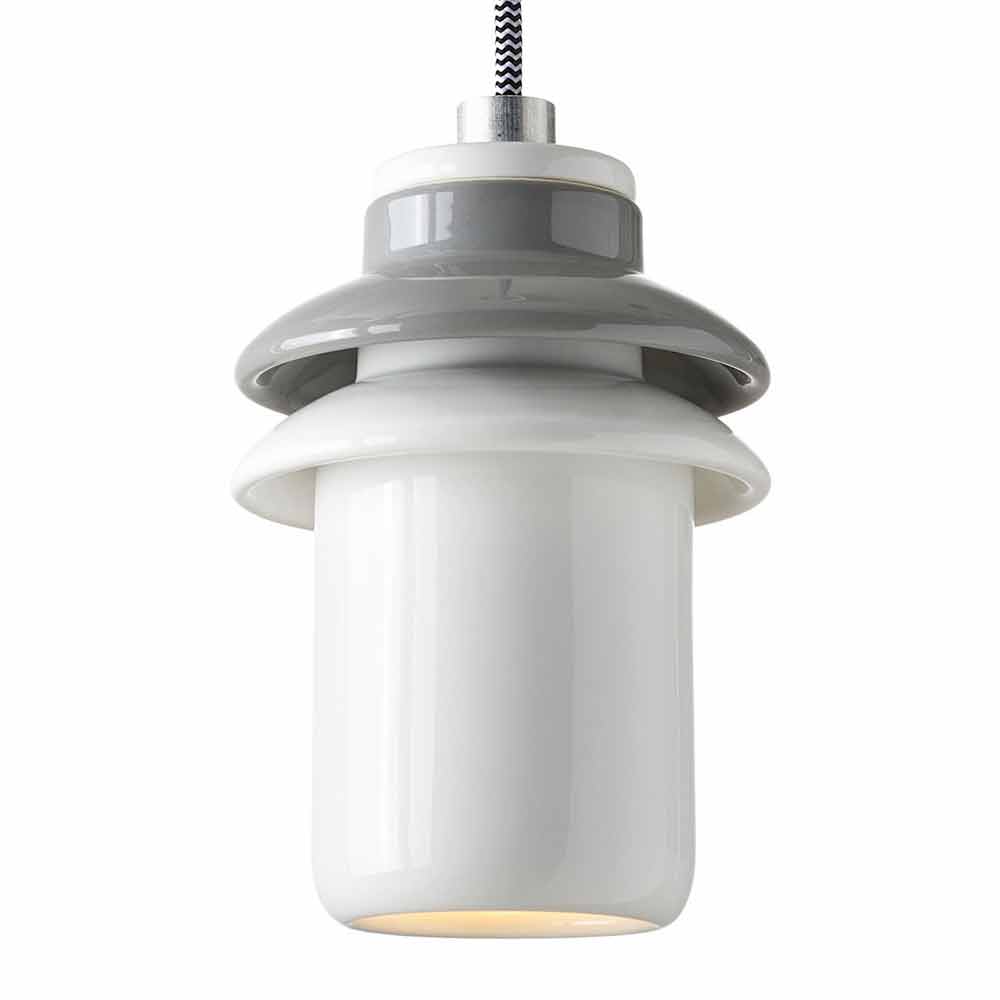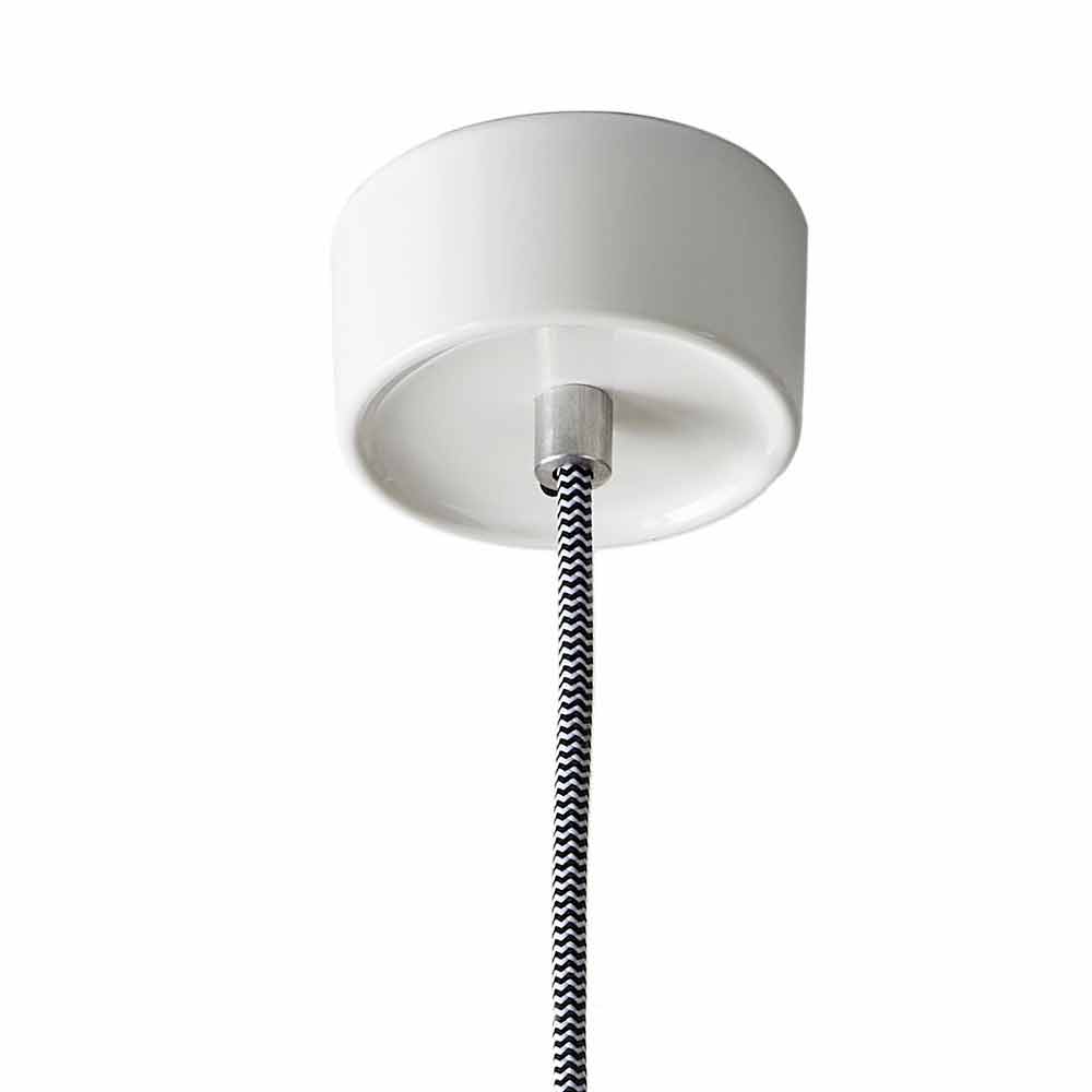 Made in Italy by skilled white and grey ceramic artisans, with black and white cloth cable and the aluminium cable clamp.