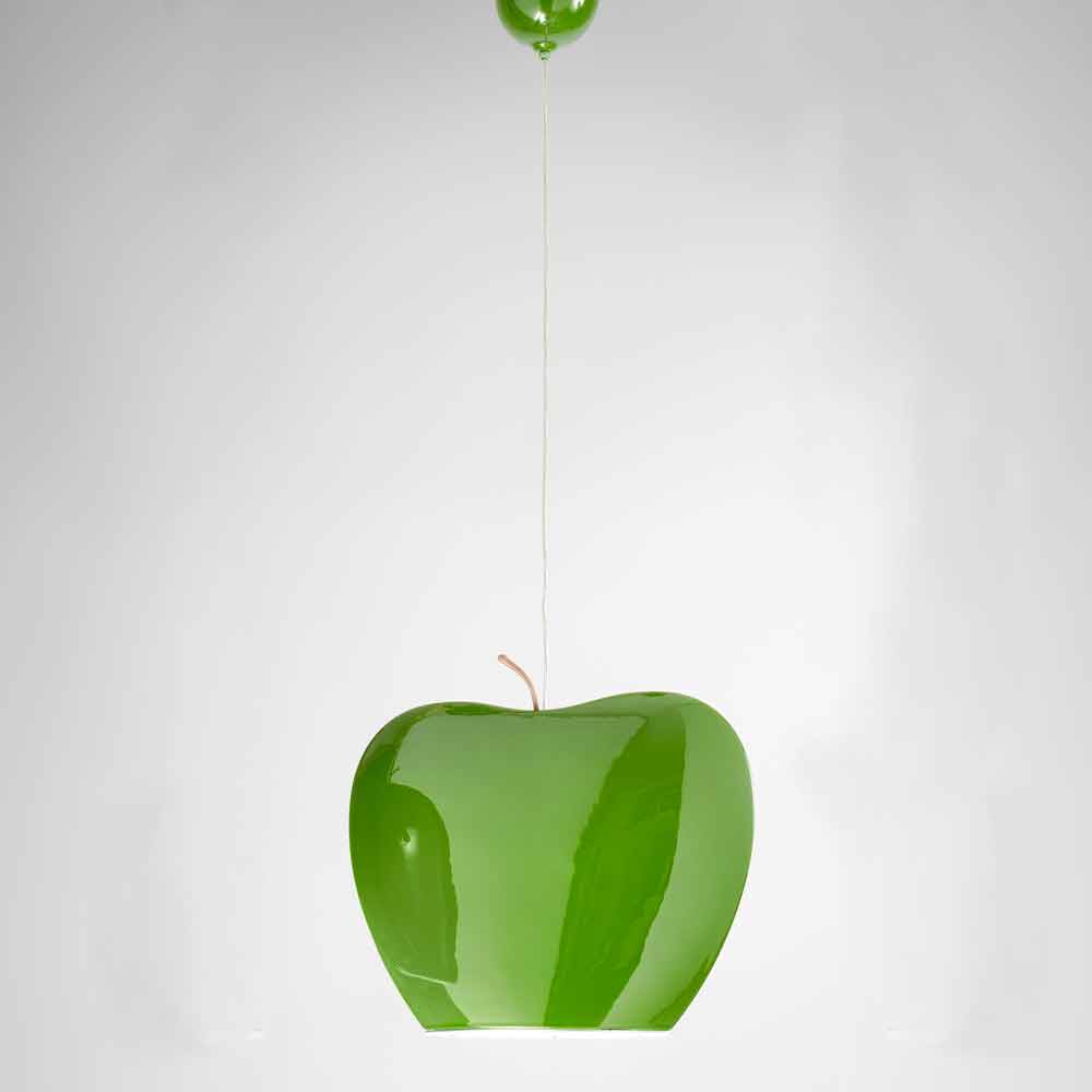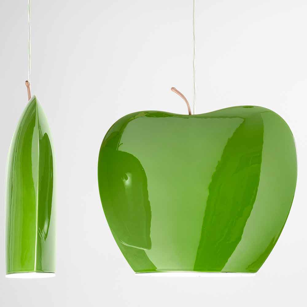 Lighting with an eccentric design: ceramic suspension in the shape of an apple, Fruits collection Aldo Bernardi.