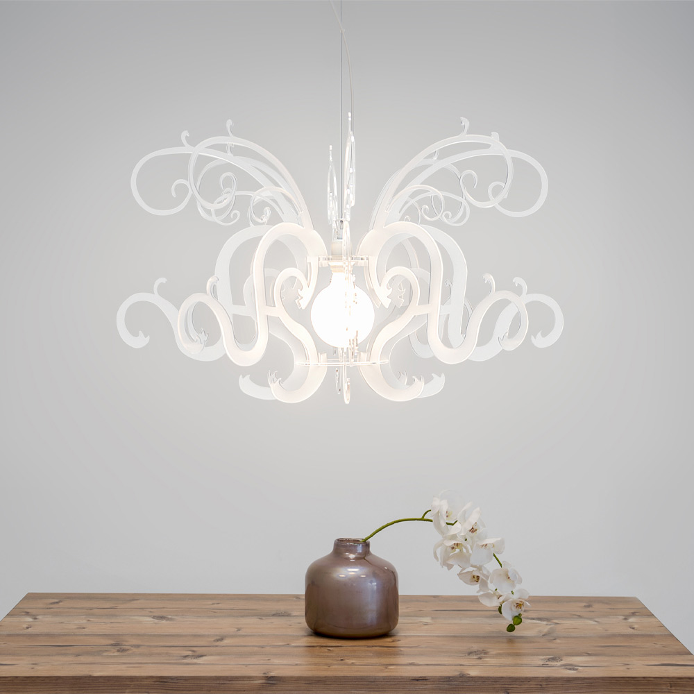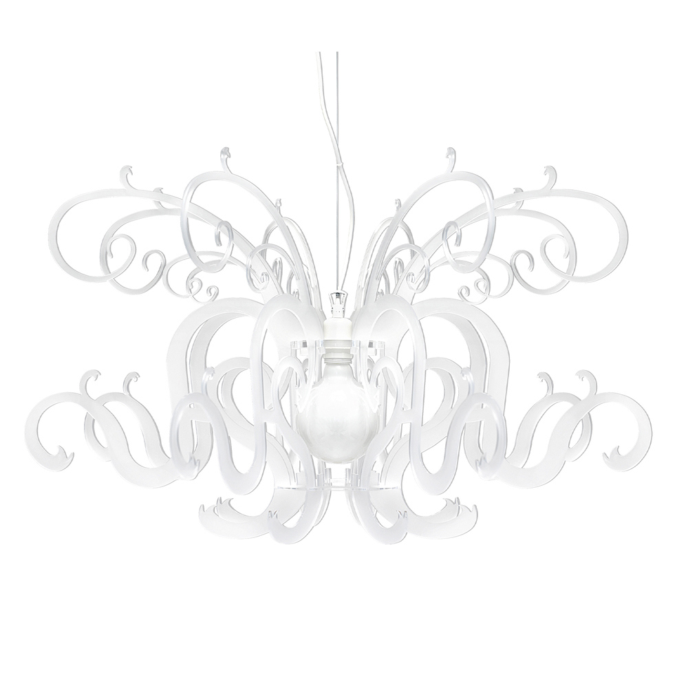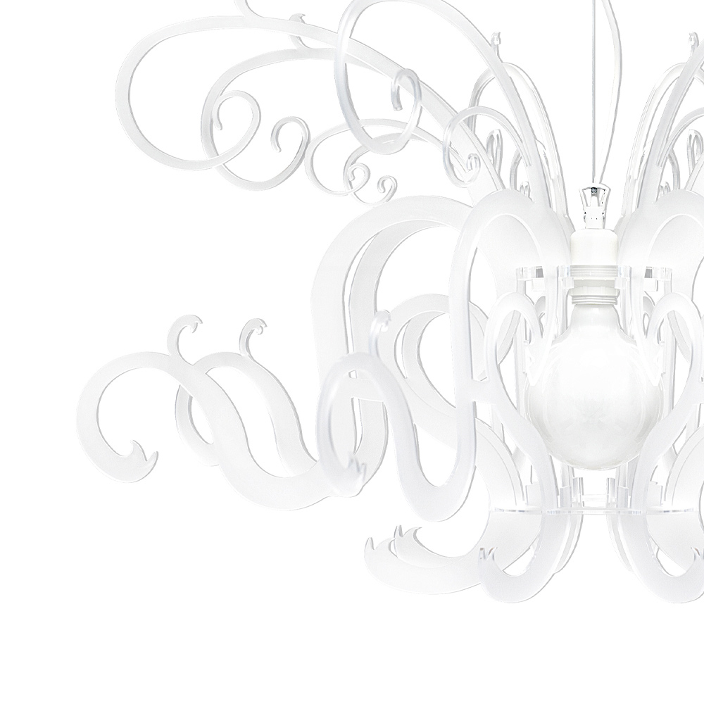 Suspension lamp in recyclable white plexiglass made in Italy.