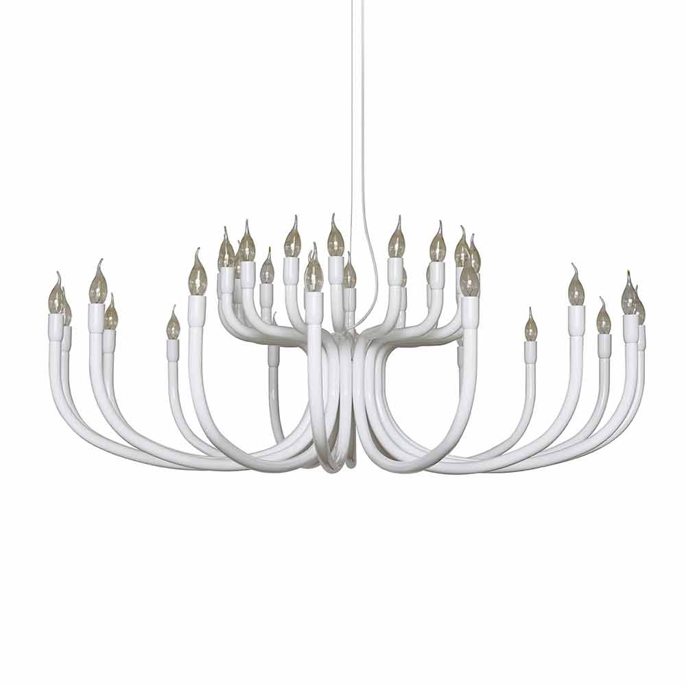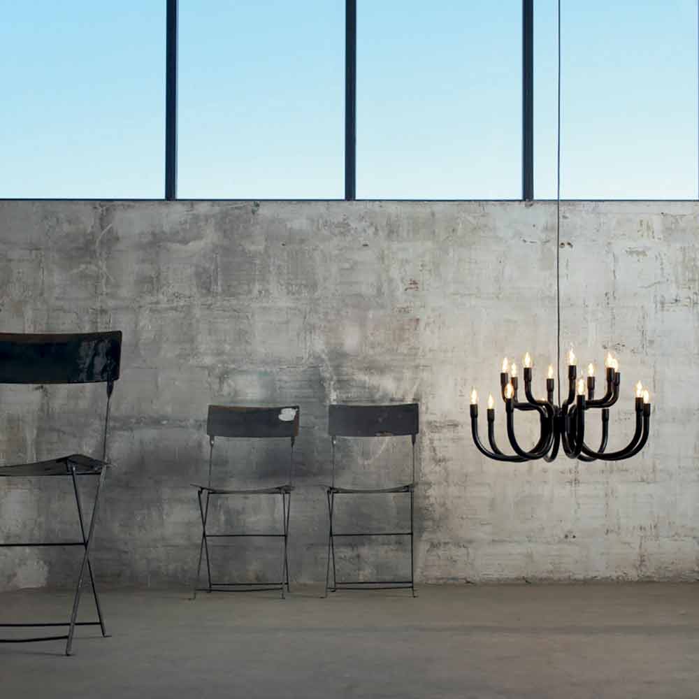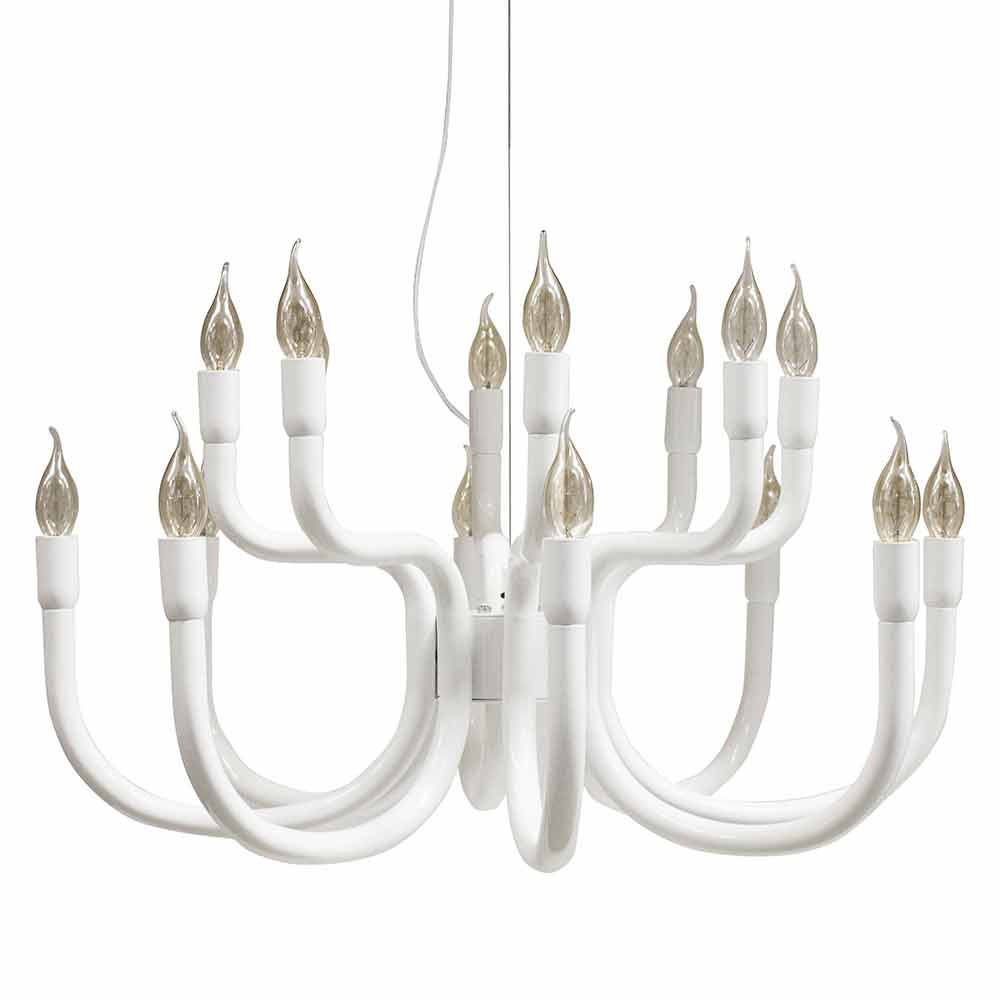 This original and singular suspension chandelier for the dining room or lounge draws inspiration in form from the ancient chandeliers of the palaces, in full Baroque style rich in decorations, but is nevertheless revisited in a modern key with an extremely simple design to be inserted into spaces of different types, always keeping its stage presence alive.