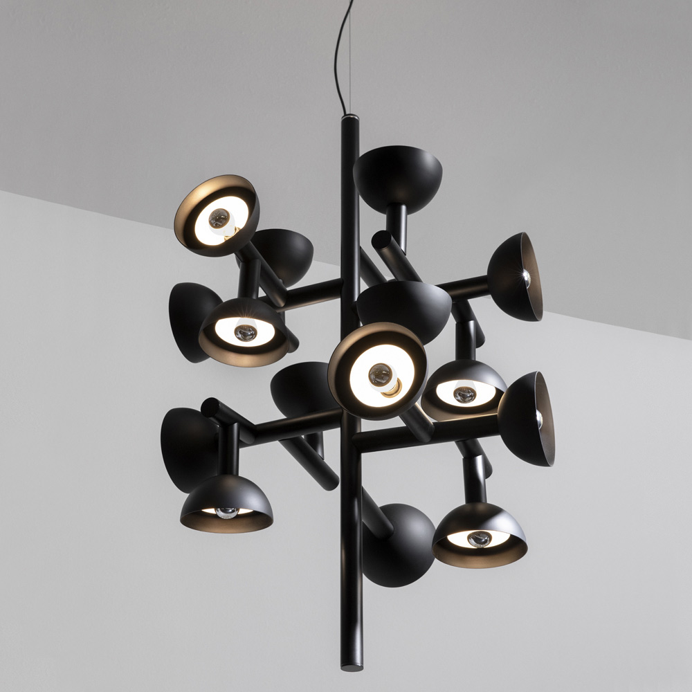 Suspension Lamp 16 Lights Design in White or Black -Celio Aluminium