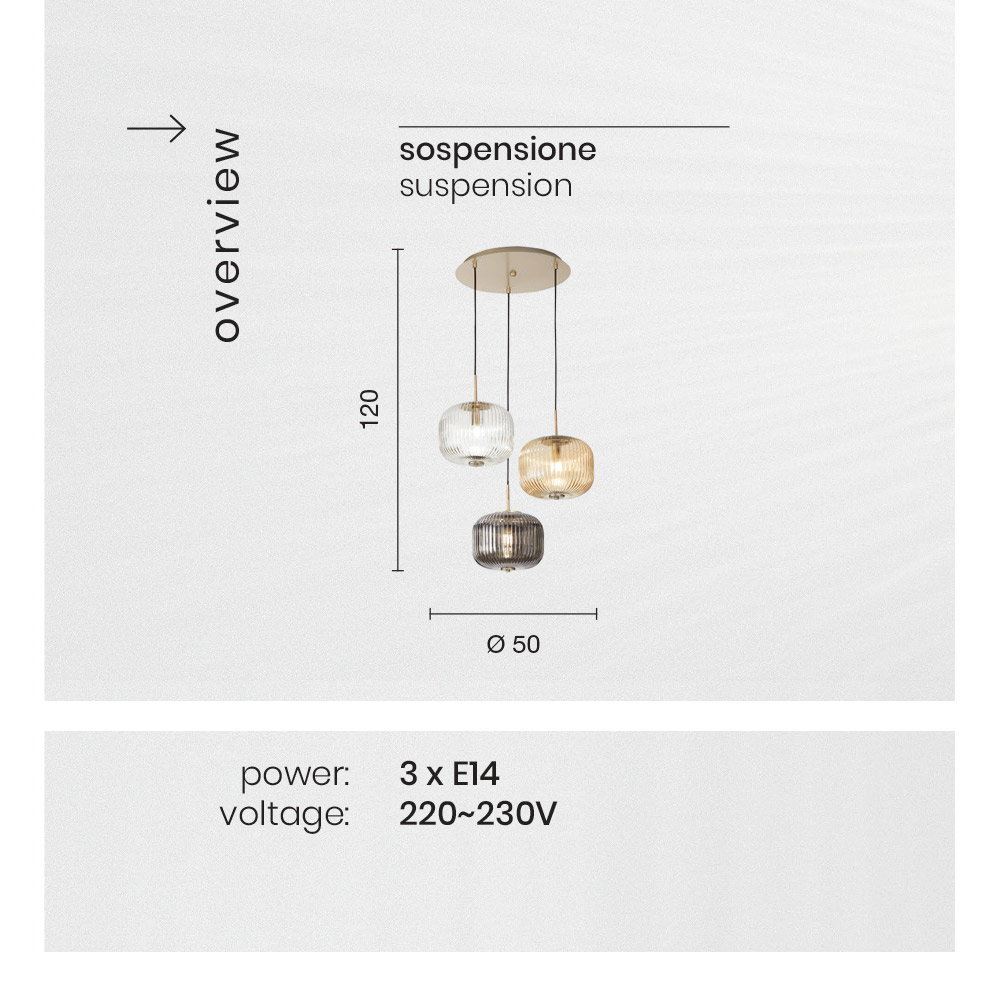 Bulb characteristic : 3x E14 220-230V