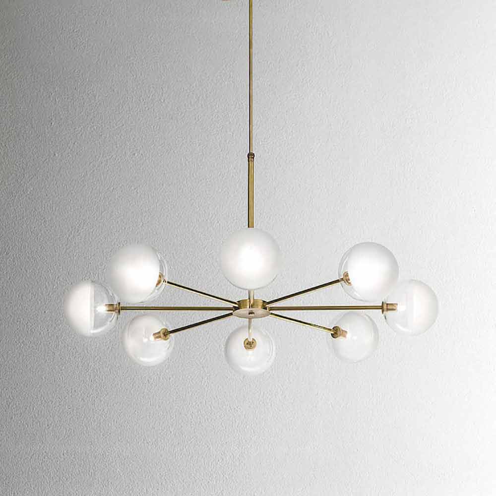 Suspension Lamp 8 Lights in Natural Brass and Glass - Molecola by Il Fanale