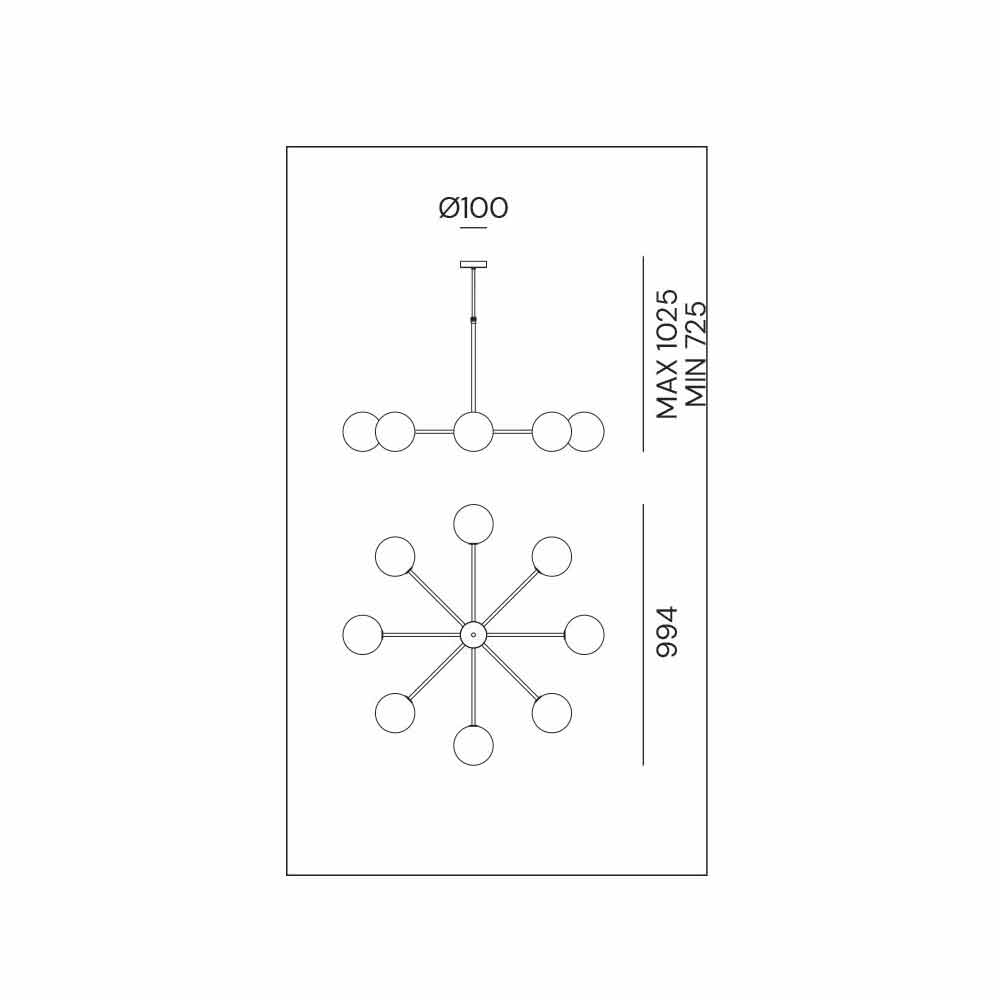 On request also available in the version in antique brass or black painted and copper-plated glass spheres.