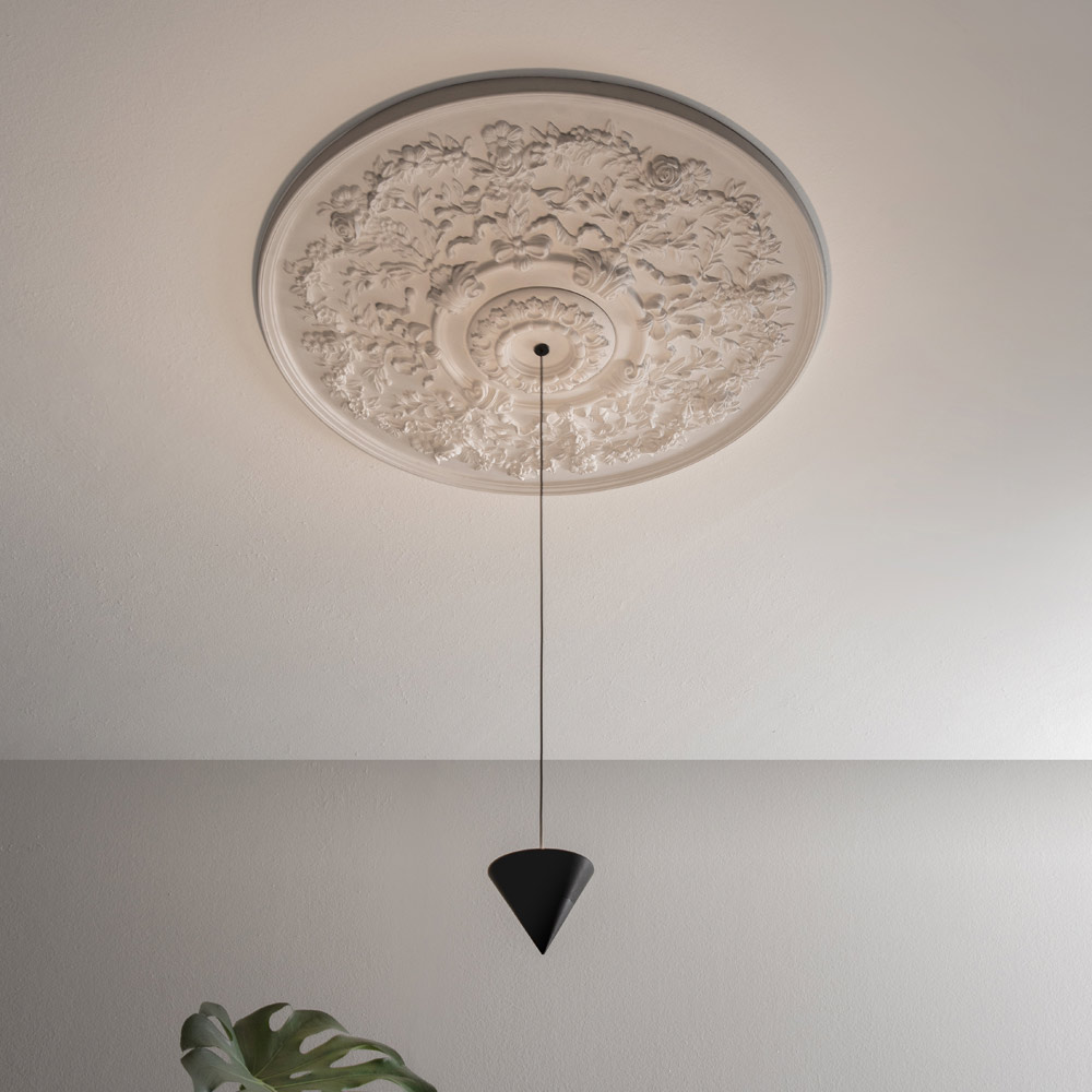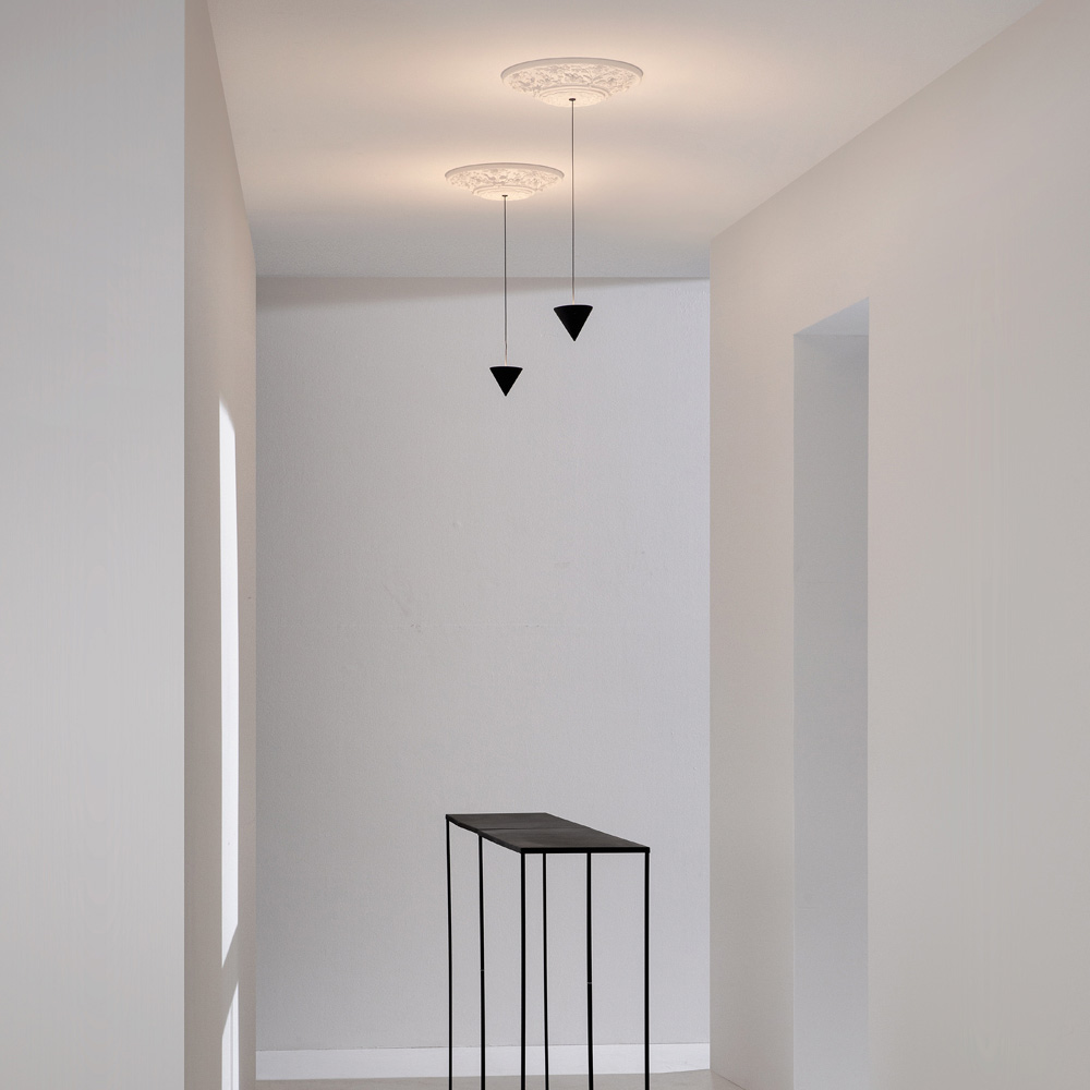 Suspension Lamp Design White Gypsum and Black Aluminium 1 Cone - Tesera