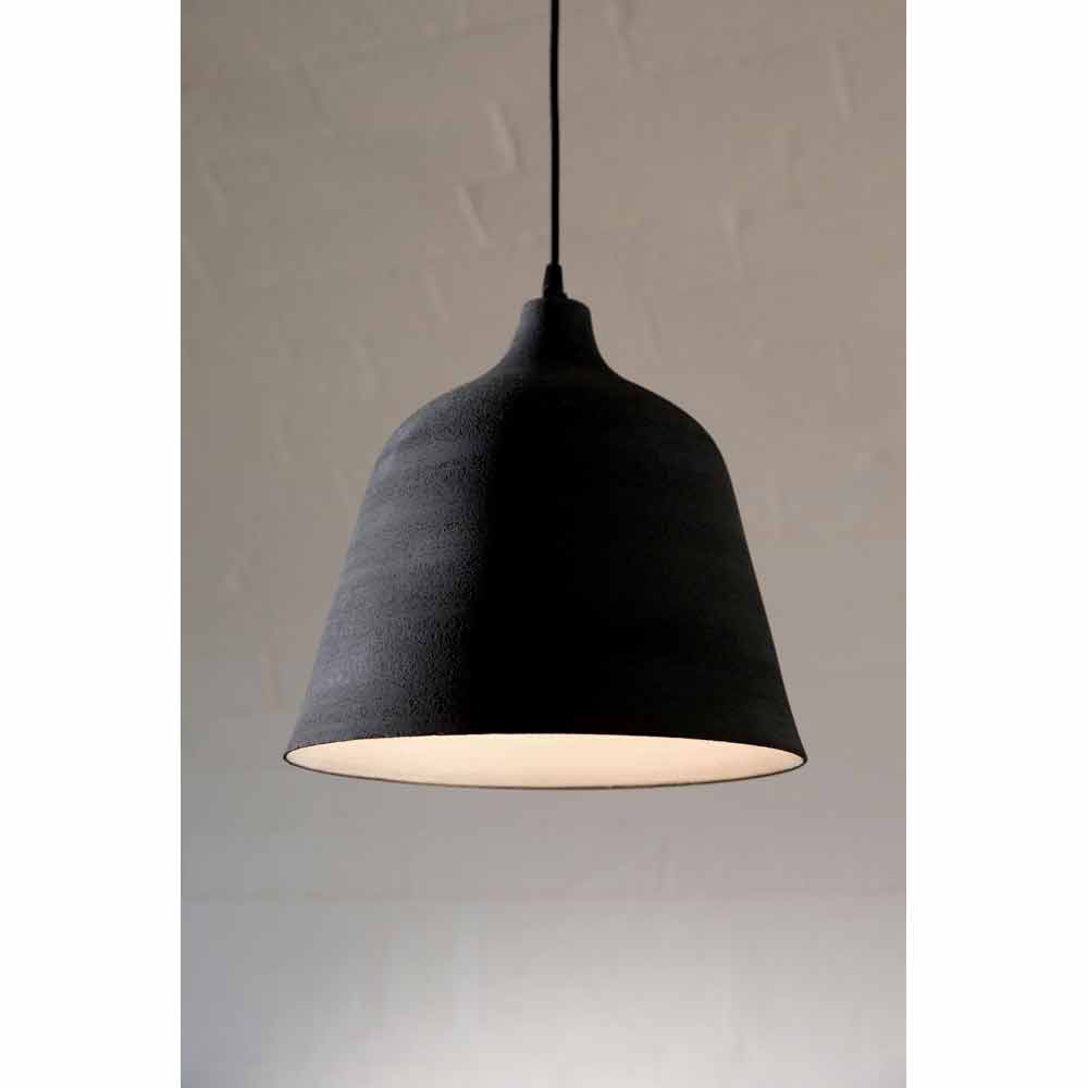 The lamp is made of matt anthracite stoneware, a compositional continuity material that differs from ceramic for greater resistance to atmospheric agents, fire and thermal shocks. White enamelled interior.