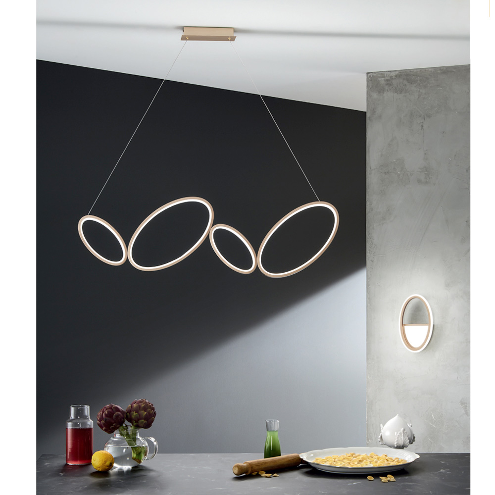refined and innovative design capable of gaining the centre of attention within domestic spaces such as dining rooms, kitchens, lounges or bedrooms bed with contemporary furnishings. The wonderful golden finish that underlines the entire structure gives the product its