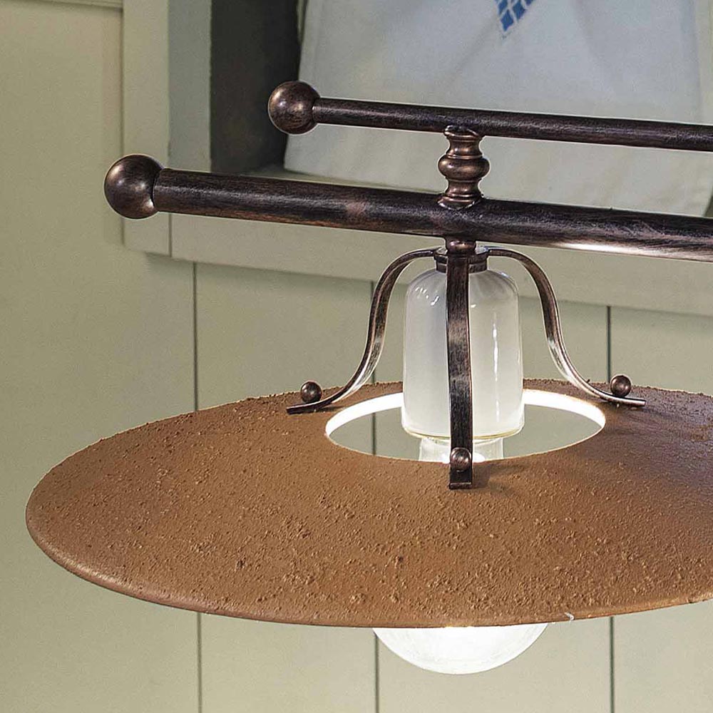 Suspended lamp with 2 lights in iron and handmade rough ceramic, made in Italy by Ferroluce.