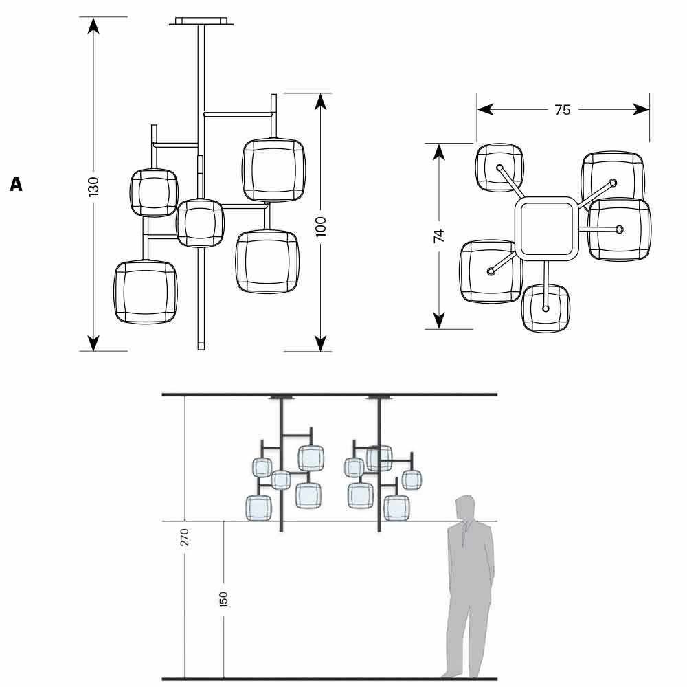 • L 75 x P 74 x H 130 cm (5 cubes);