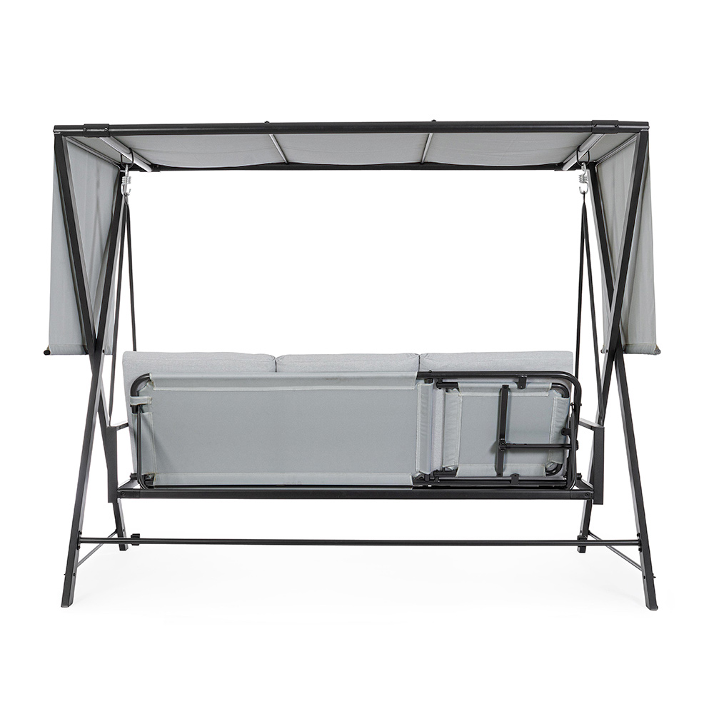 The adjustable sun canopy offers protection from the sun's rays, allowing you to adjust the shade to your liking, while the side curtains add a touch of privacy and additional protection . This swing is more than just a seat; it is a personal refuge in your garden , an invitation to take a break from the daily frenzy and rediscover the pleasure of time spent outdoors. Perfect for those looking for a corner of tranquility and style , this swing is ideal for elevating the relaxation experience in your outdoor space.