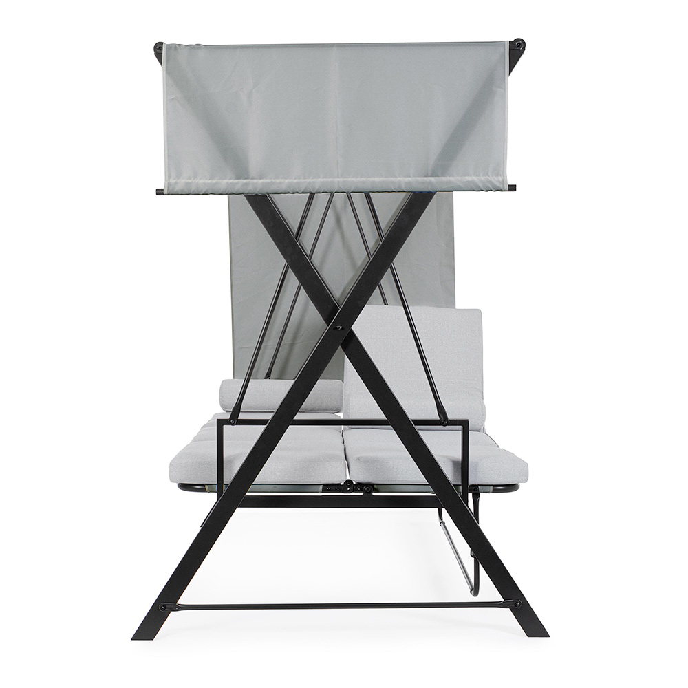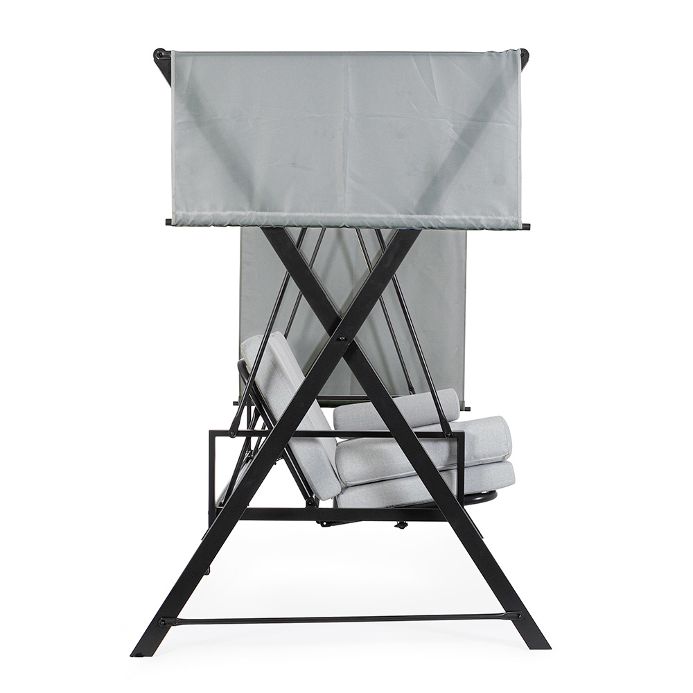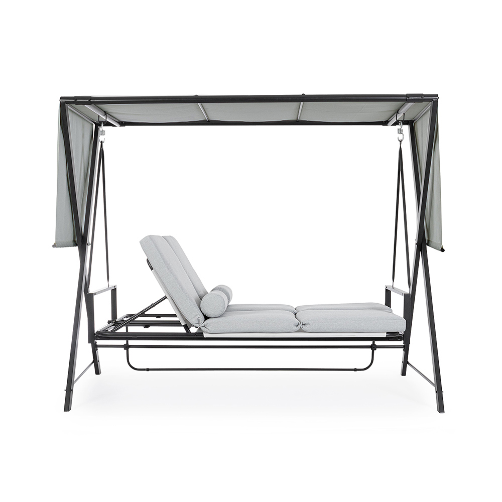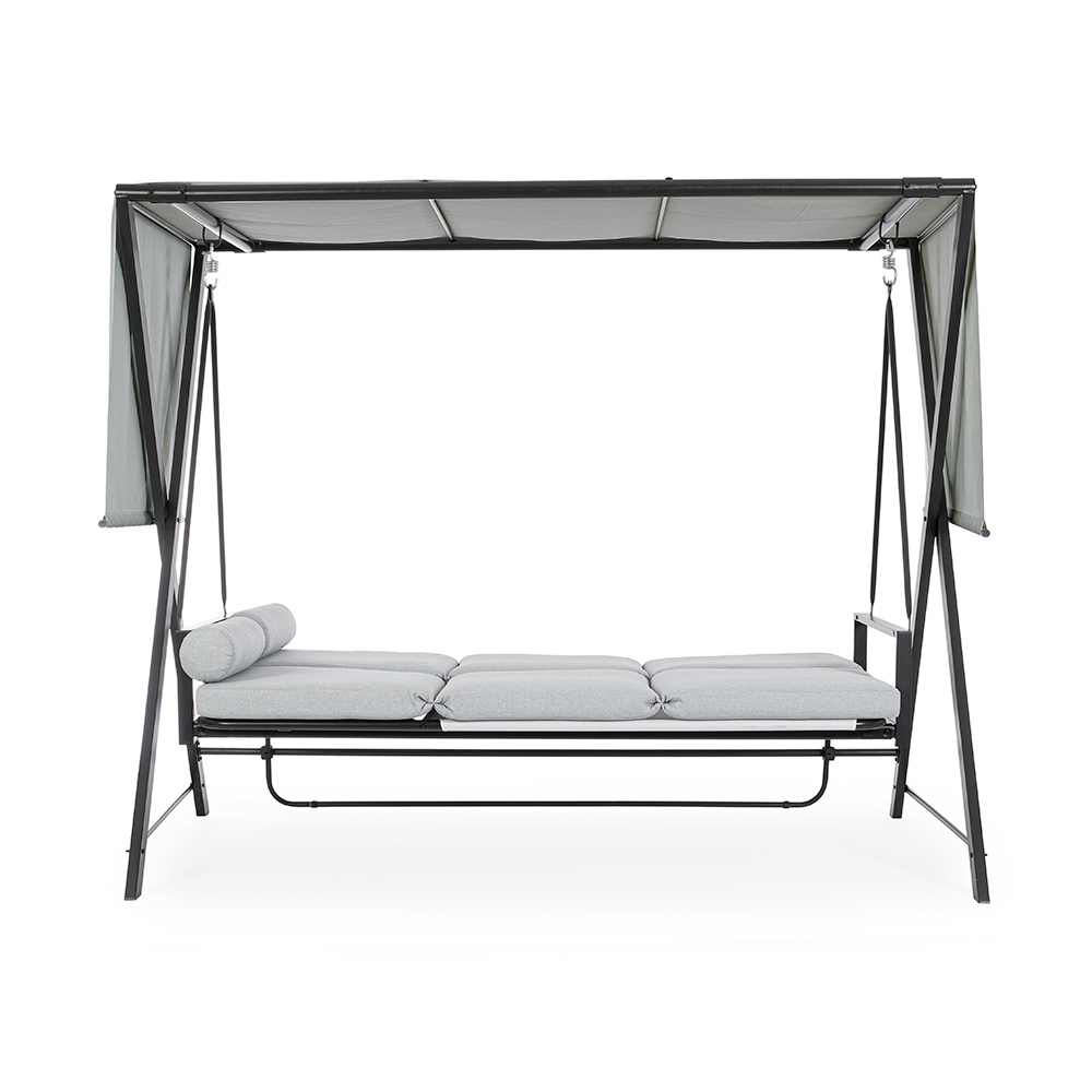 This garden swing is an oasis of peace and relaxation, designed to enrich any outdoor space with its elegant and comfortable design . The solid painted metal structure provides not only stability but also a strong and contemporary aesthetic. The soft and inviting cushions promise hours of comfort, perfect for immersing yourself in an exciting read or enjoying a sweet nap in the shade.