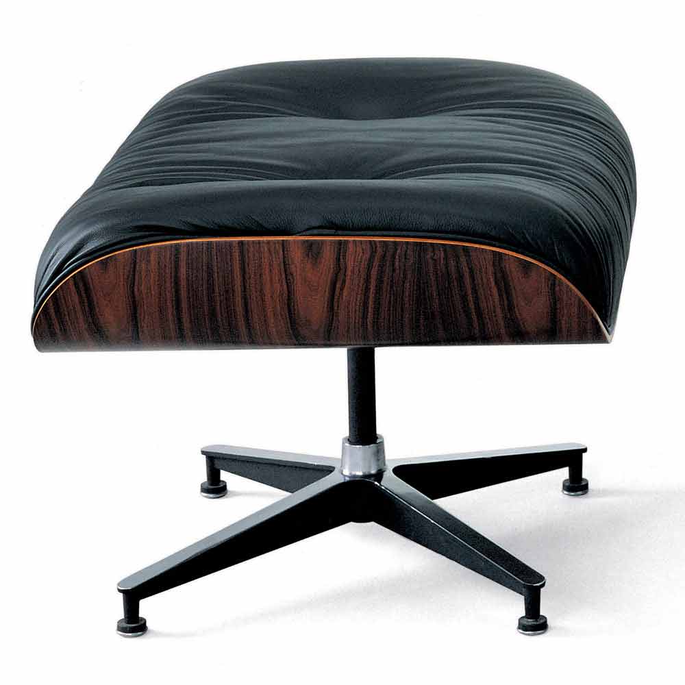 Swivel armchair entirely made in Italy with aluminium base, rosewood shell, polyurethane foam and polyester fibre cushions and leather upholstery complete with footrest pouf matching the armchair. An idea of furniture that blends in itself the elegance of the chosen materials and the functionality of its conformations, offering a