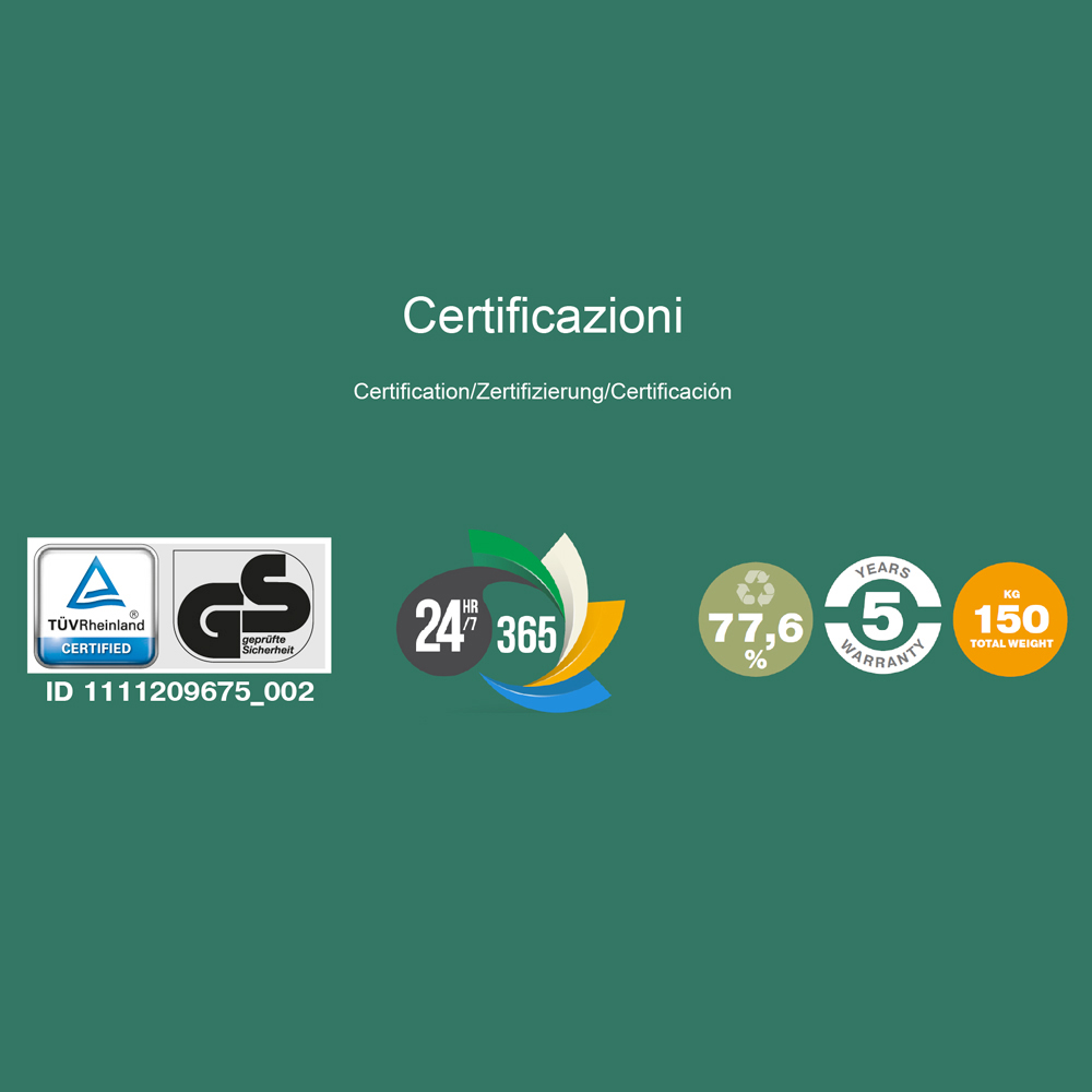 resistance to any stress that guarantees its use 24 hours a day, 7 days a week, also obtaining the TÜV GS certification.