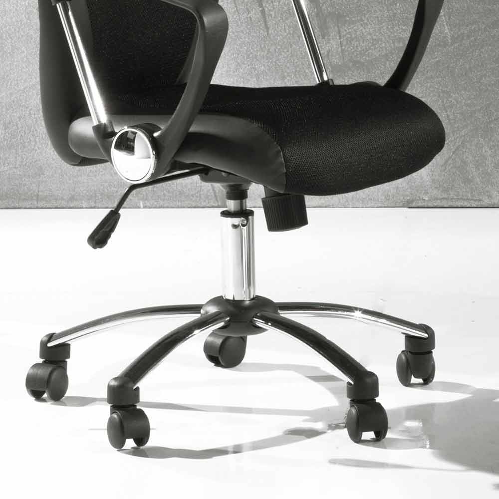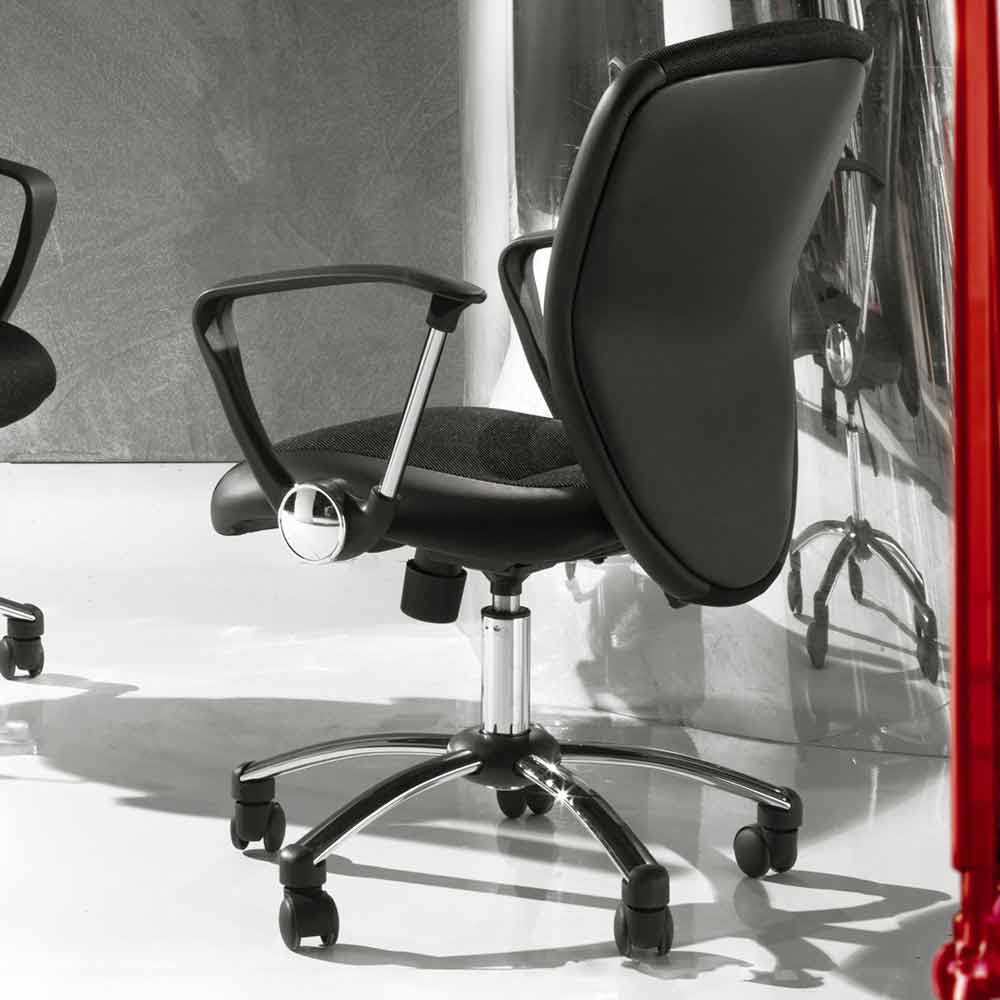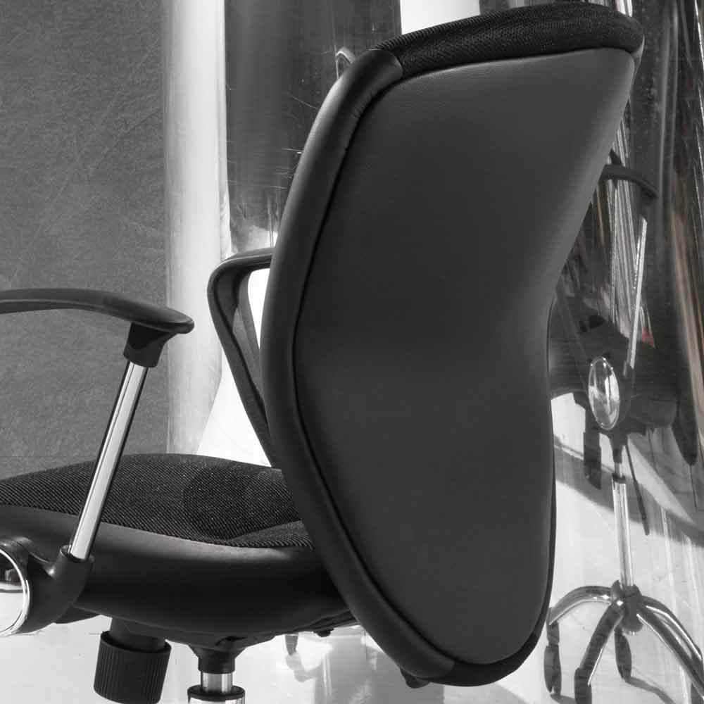 The Giovanna swivel office chair is ideal to give freedom of movement and maximum comfort to the user; it comes with a swivel seat with petrol lift, chromed metal structure with polyurethane wheels; seat covered in black puma and back in black micro-perforated technorete.