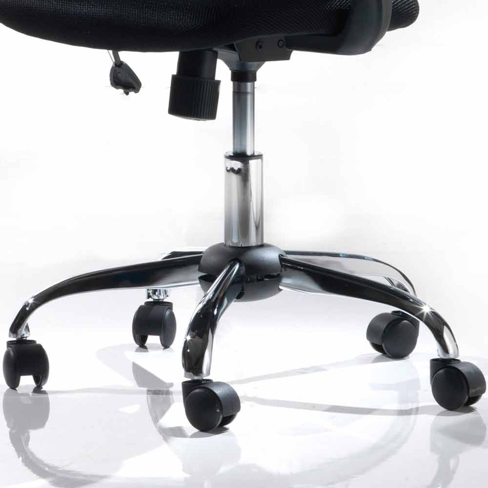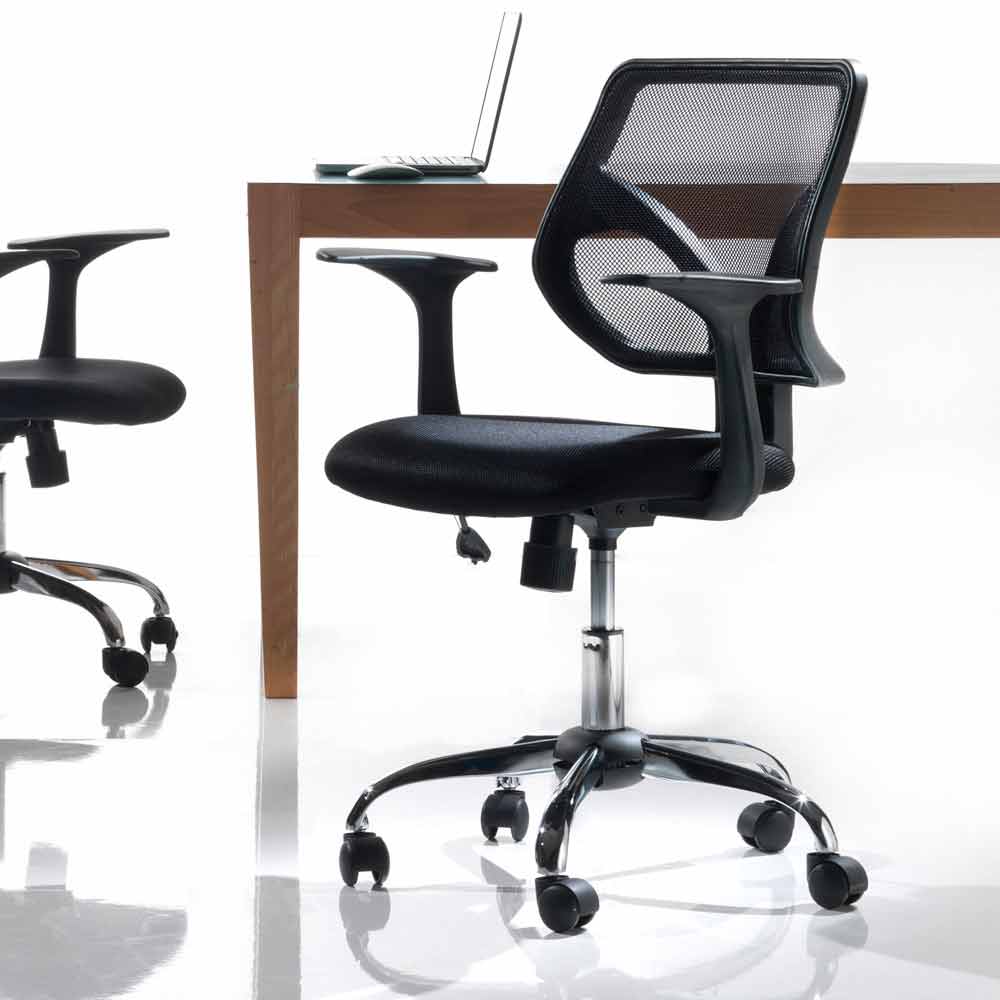 The Giovanna swivel office chair is ideal to give freedom of movement and maximum comfort to the user; it comes with a swivel seat with petrol lift, chromed metal structure with polyurethane wheels; seat covered in black puma and back in black micro-perforated technorete.