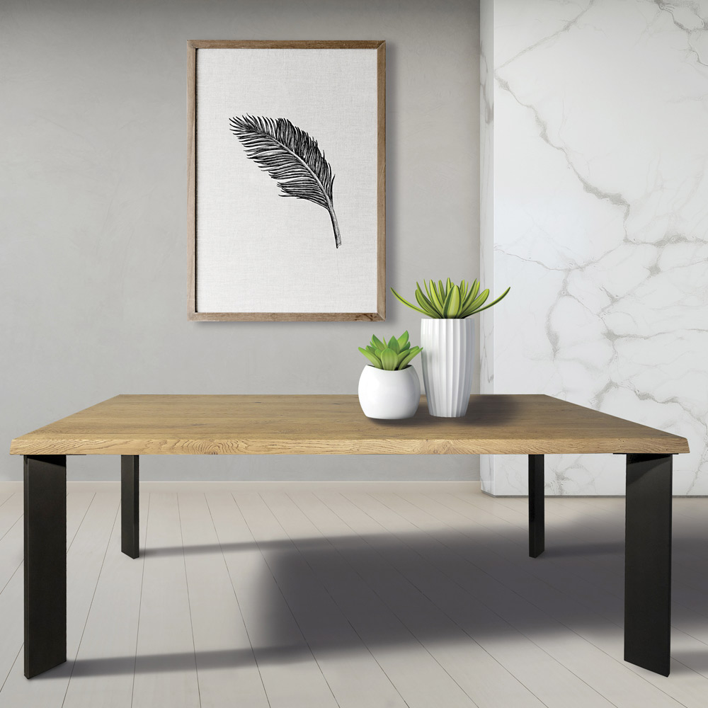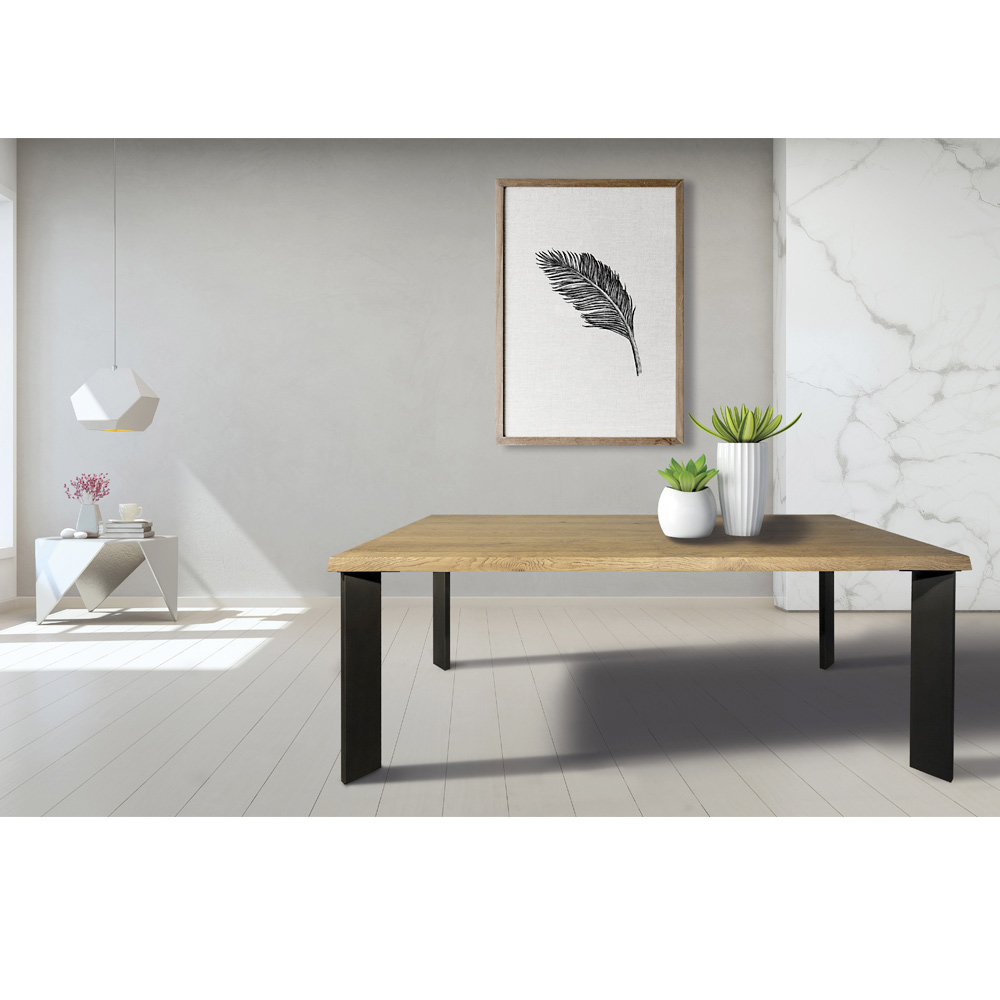 Wooden table plated in veneered knotted oak and metal base Made in Italy.