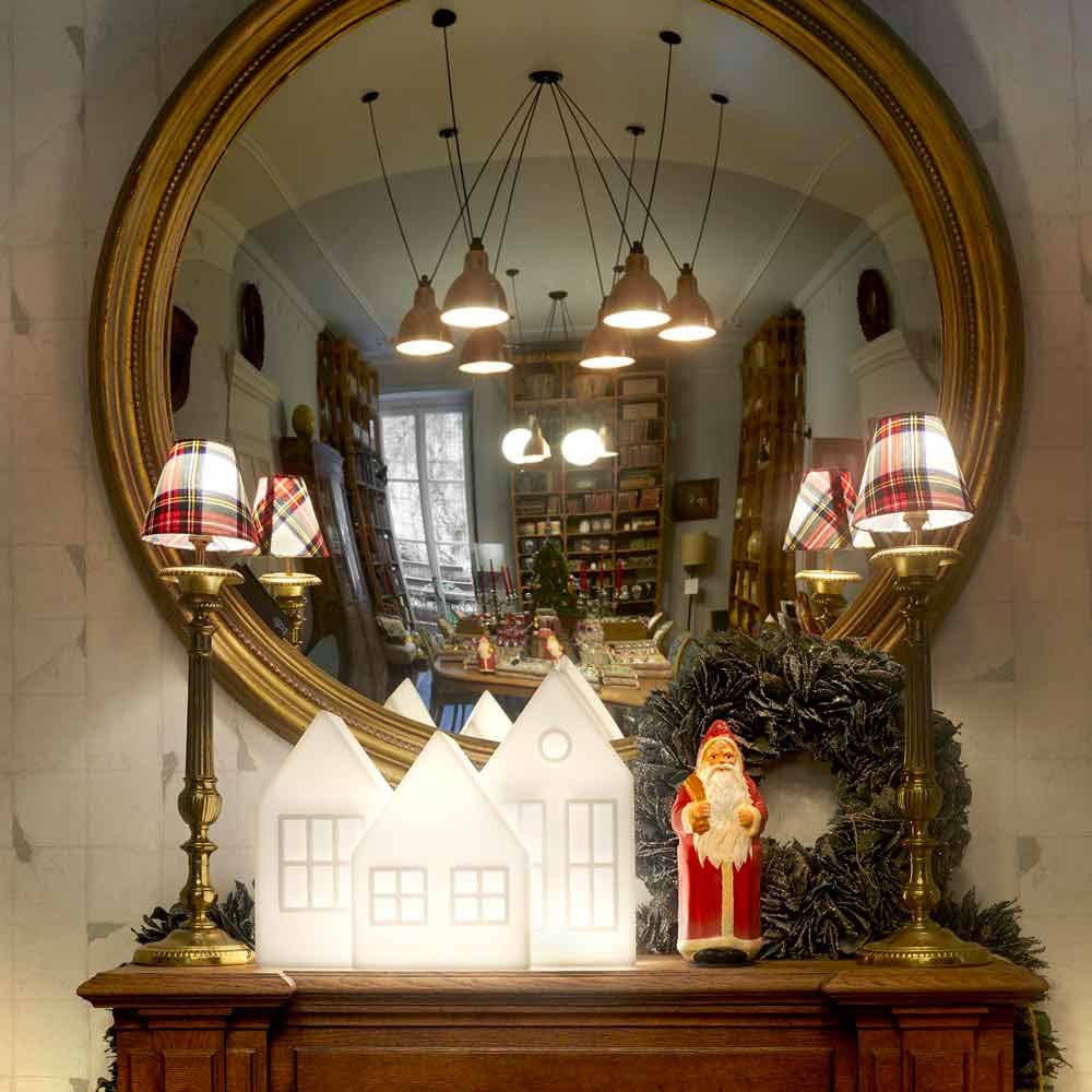This table lamp helps to create the Christmas spirit thanks to its crib-shaped design with a strong contemporary soul, which recalls the classic style of typical Scandinavian landscapes.