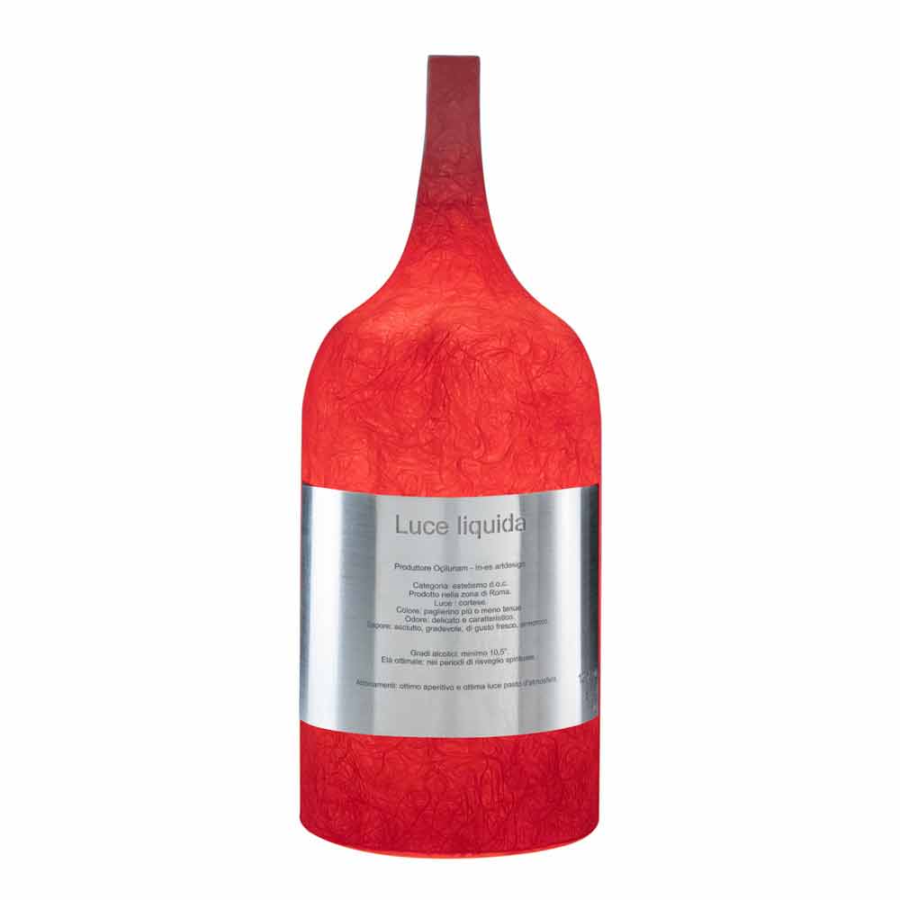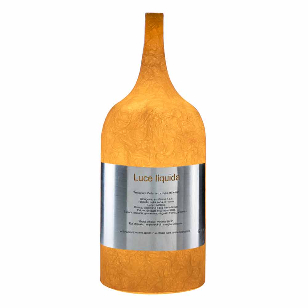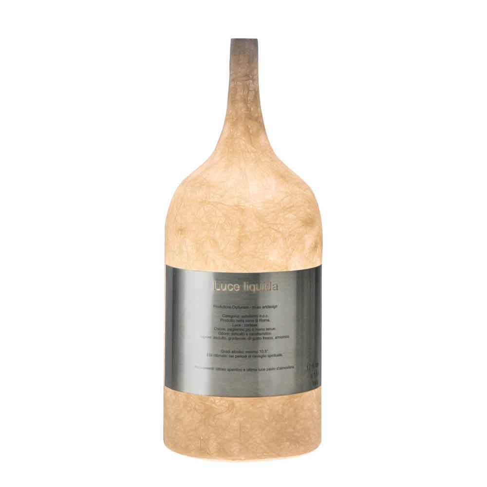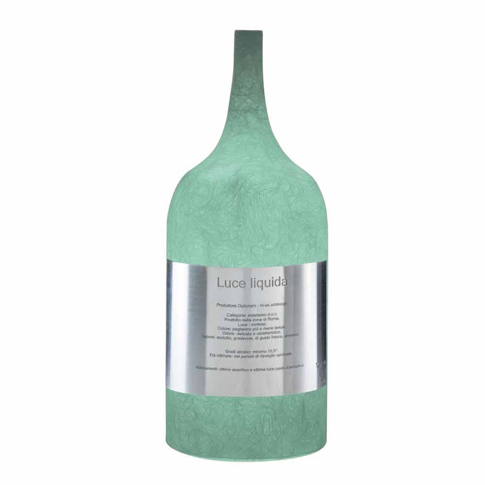 The Luce Liquida 1 table lamp is famous for the beauty of its slender light enclosed in the bottle.