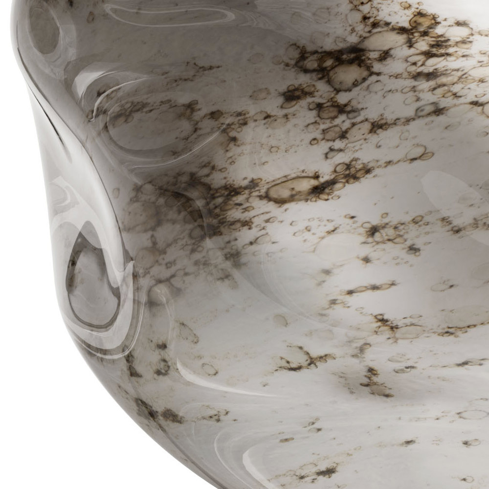 This product is the perfect embodiment of the Mediterranean style: warm, natural and material. Each Murano glass sphere was created by hand by the skill of master glassmakers to bring to mind the memory of the harsh beauty of the stone. The glass, enriched with metal powder, is expertly shaped each time so as to create unique and never replicable pieces and this is the true value of this element. The dark brass structure gives that rustic touch that makes it perfect for any environment giving a modern and timeless look.