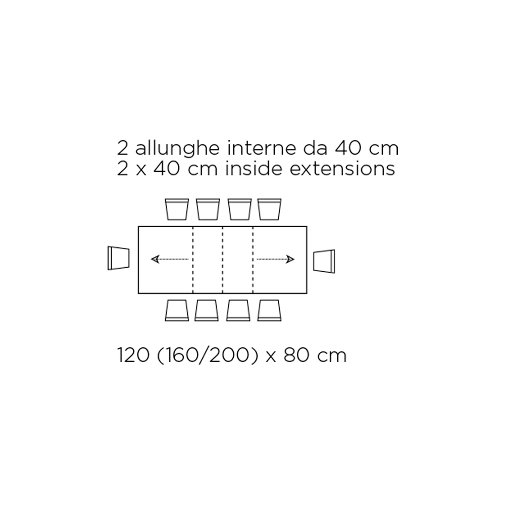 - length 120/200 cm x depth 80 cm x height 77 cm