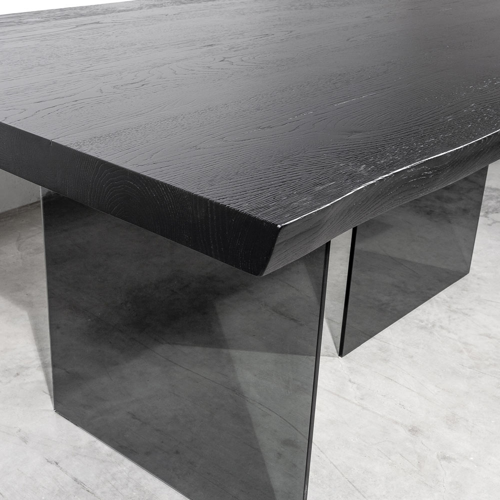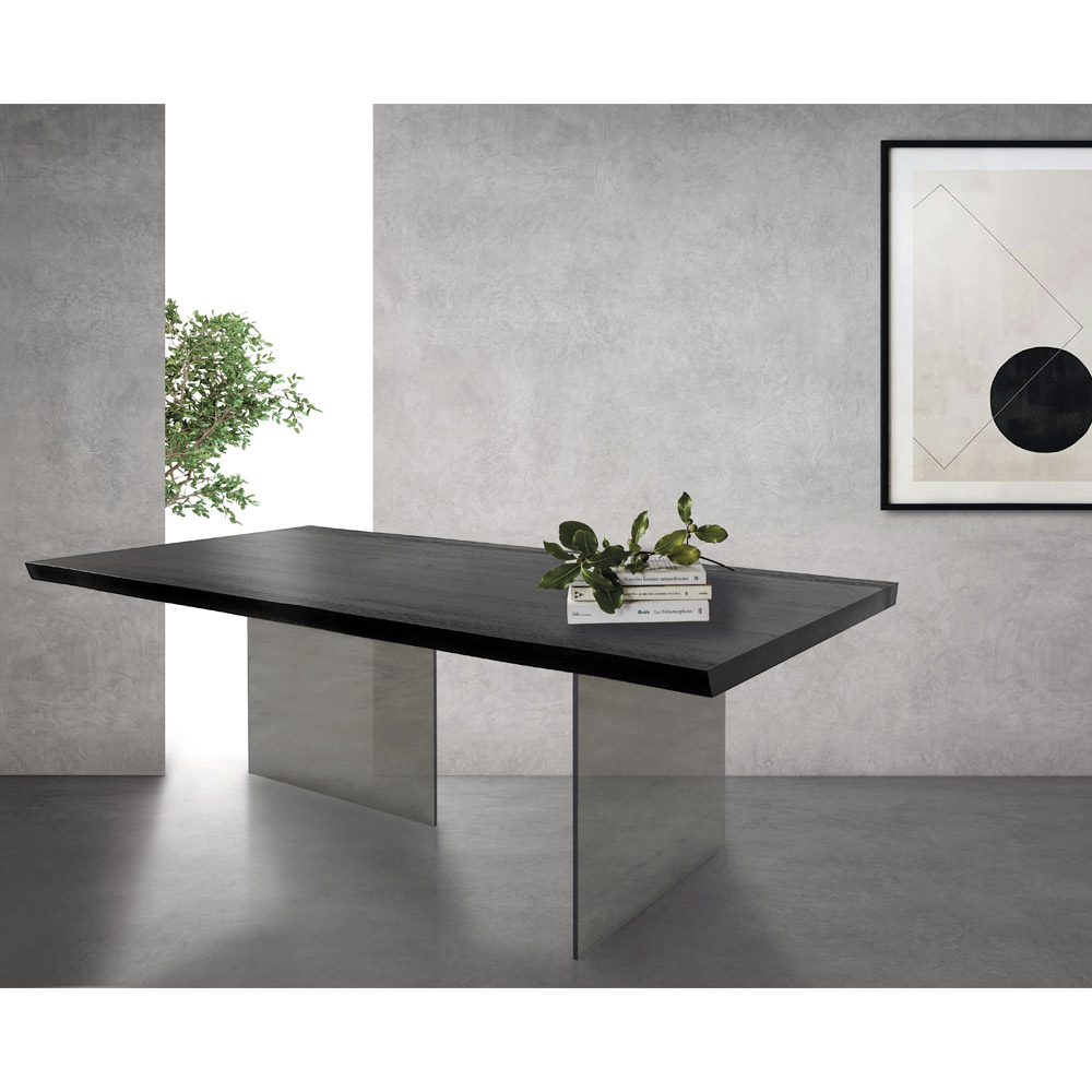 Wooden table plated in knotted oak and crystal base Made in Italy.