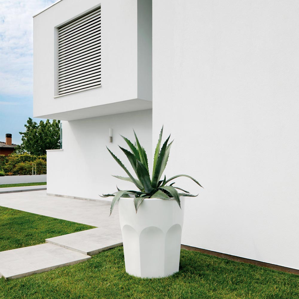 polyethylene available in the opaque version characterized by excellent resistance to the sun, shocks and heat, in the resistant and bright lacquered version that allows you to create plays of light and reflections that become protagonists inside the environment or, finally, in the metallic version. Born as a simple decorative vase for medium / large plants, this product is also ideal for parties or outdoor events to be used to cool bottles when filled with ice.