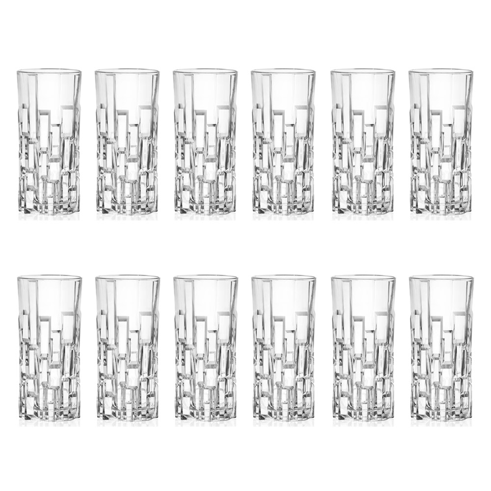 Tall Drinking Glasses in Decorated Ecological Crystal 12 Pieces - Catania