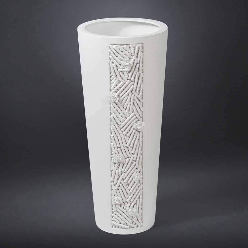 Tall decorative vase made in Italy in opaque white ceramic through craftsmanship . A simple and essential style completed and enriched by a refined detail with a log texture that characterises part of the vase's structure making it unique and original. This detail together with the elegant finish chosen give this complement all its eclectic personality making it a perfect solution for spaces characterized by a classy style . The use of ceramics and craftsmanship make it an exclusive and refined decorative element, increasing its value and emphasizing its quality. An ideal aesthetic for the most varied environments, from home furnishings to that of hotels, restaurants, contract areas, spas but also as a setting for events and weddings.