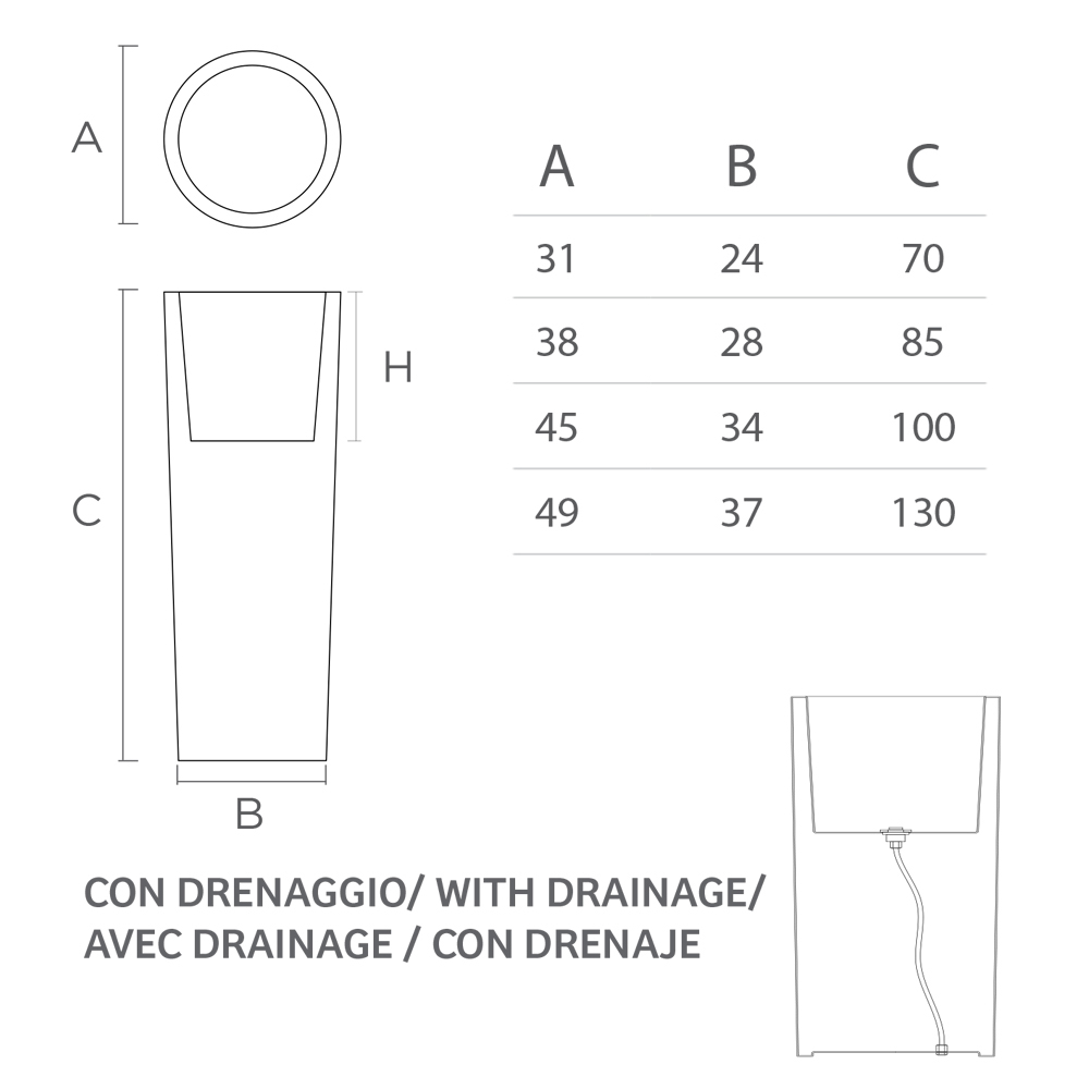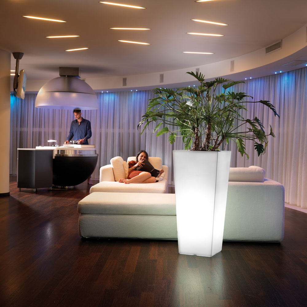 The structure includes a water drainage kit to allow this vase to decorate indoor and outdoor areas without sacrificing the practical and functional aspect. Finally, this indoor vase is equipped with an integrated LED light to give an extra touch of style to indoor spaces but also to outdoor environments during events.
