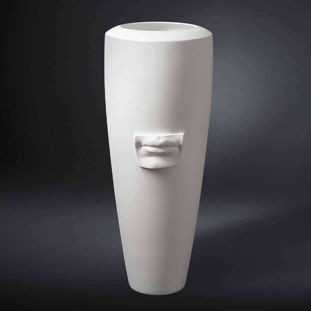 Creative indoor ornamental vase in opaque white ceramic handmade through a production totally made in Italy . A creative complement that comes from the union of a simple and minimal design ad elements extrapolated from works of art of Italian culture to give life to a totally revolutionary furnishing idea designed for those who love to enrich their spaces in an original and exclusive way . The craftsmanship underlines its value and is marked by precision, passion and love for tradition. The result is an idea of exclusive furniture ideal for the most varied environments, from home furnishings to that of hotels, restaurants, contract areas, spas but also as a setting for events and weddings.