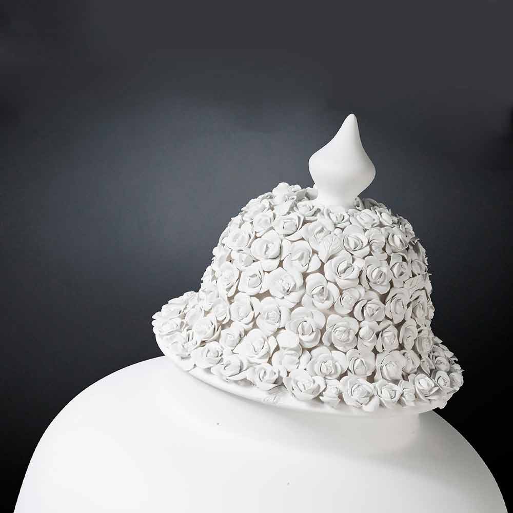 Tall vase for interiors in the shape of a potica in opaque white ceramic handcrafted in Italy. A complement of imposing dimensions ideal for furnishing large rooms with a classic style with personality and elegance in which it creates a wonderful harmony but also in modern spaces for an unprecedented game of contrasting styles . To underline the value are the use of ceramics and craftsmanship together with the particular workmanship on the tip of the vase, characteristics make it an exclusive and refined decorative element . An ideal aesthetic for the most varied environments, from home furnishings to that of hotels, restaurants, contract areas, spas but also as a setting for events and weddings.