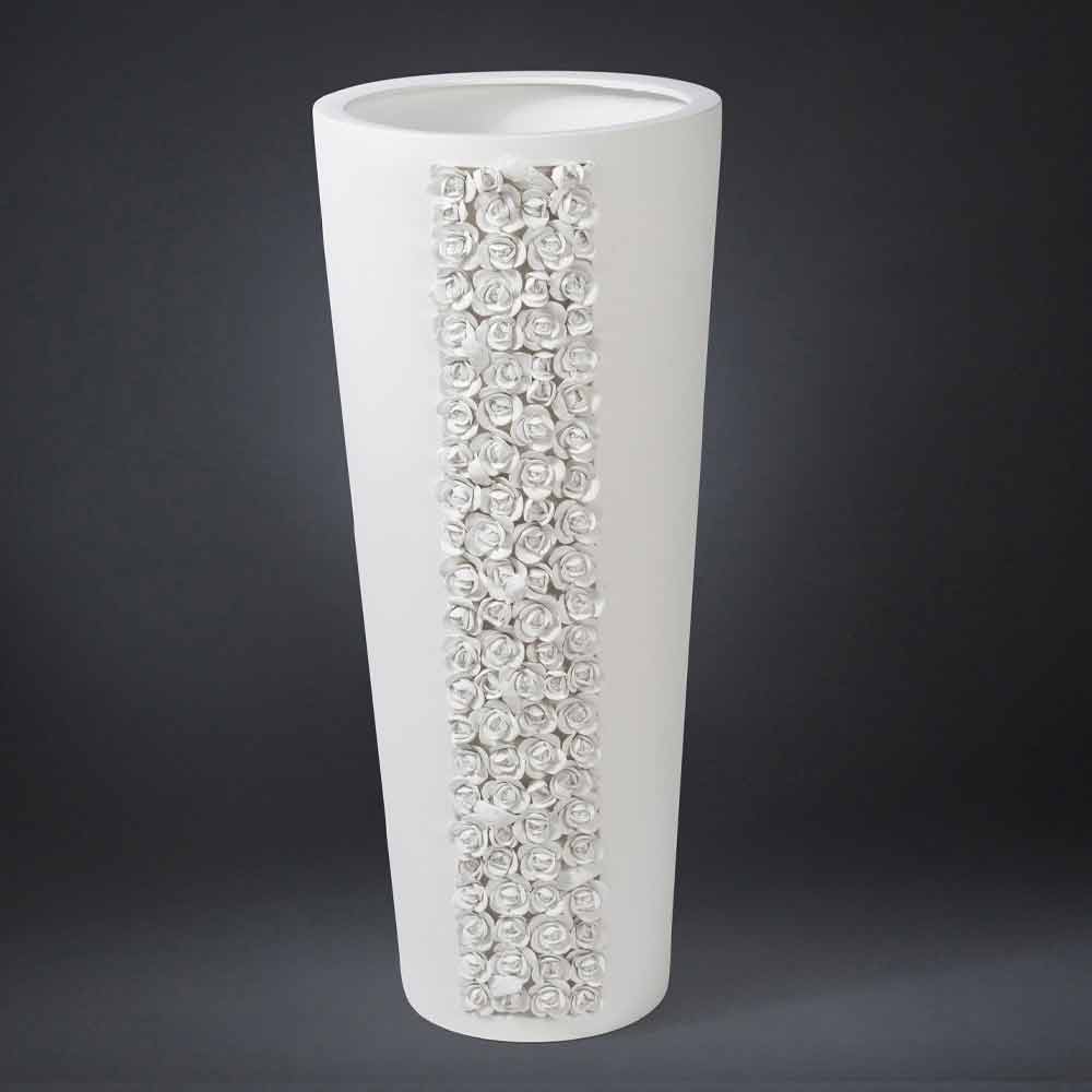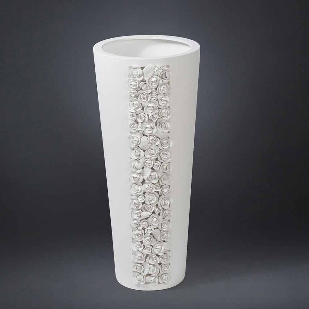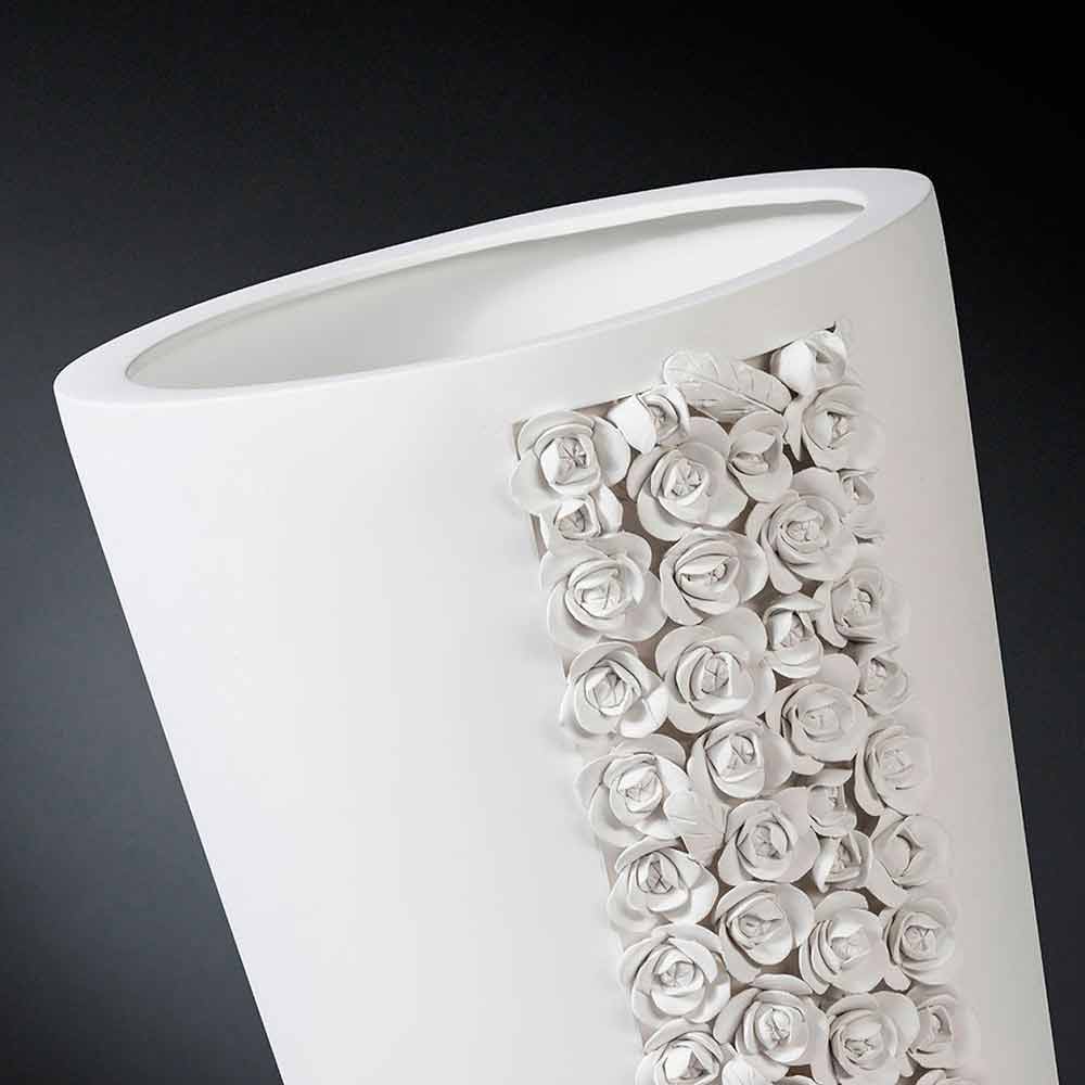 Tall ornamental vase in white ceramic handcrafted in Italy.