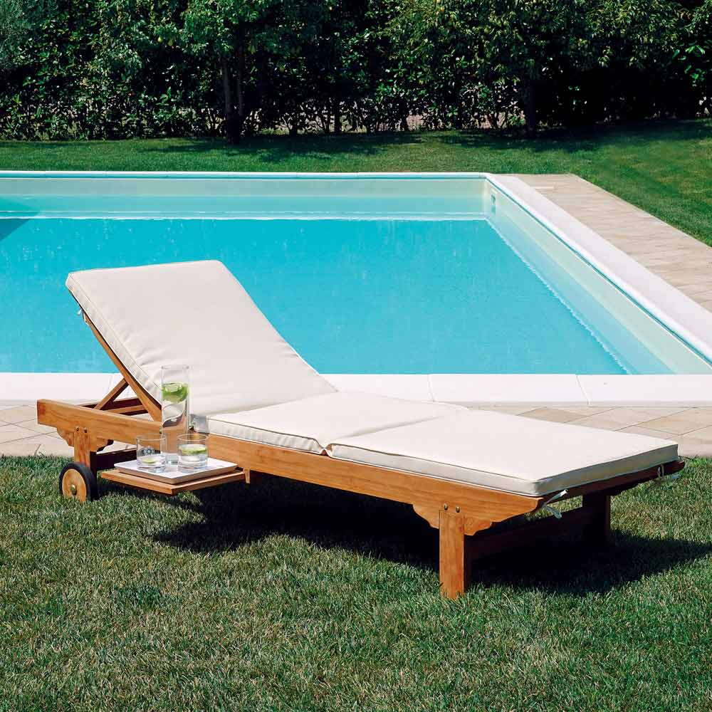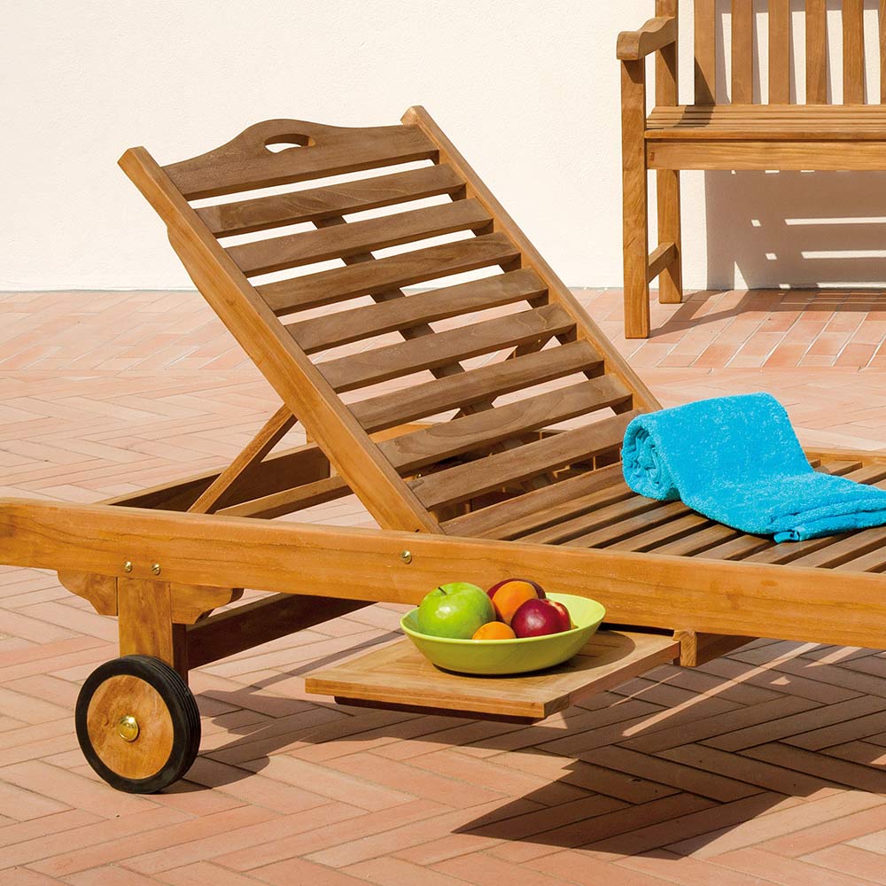 Teak Garden Lounger with Removable Table and Wheels - Oasi